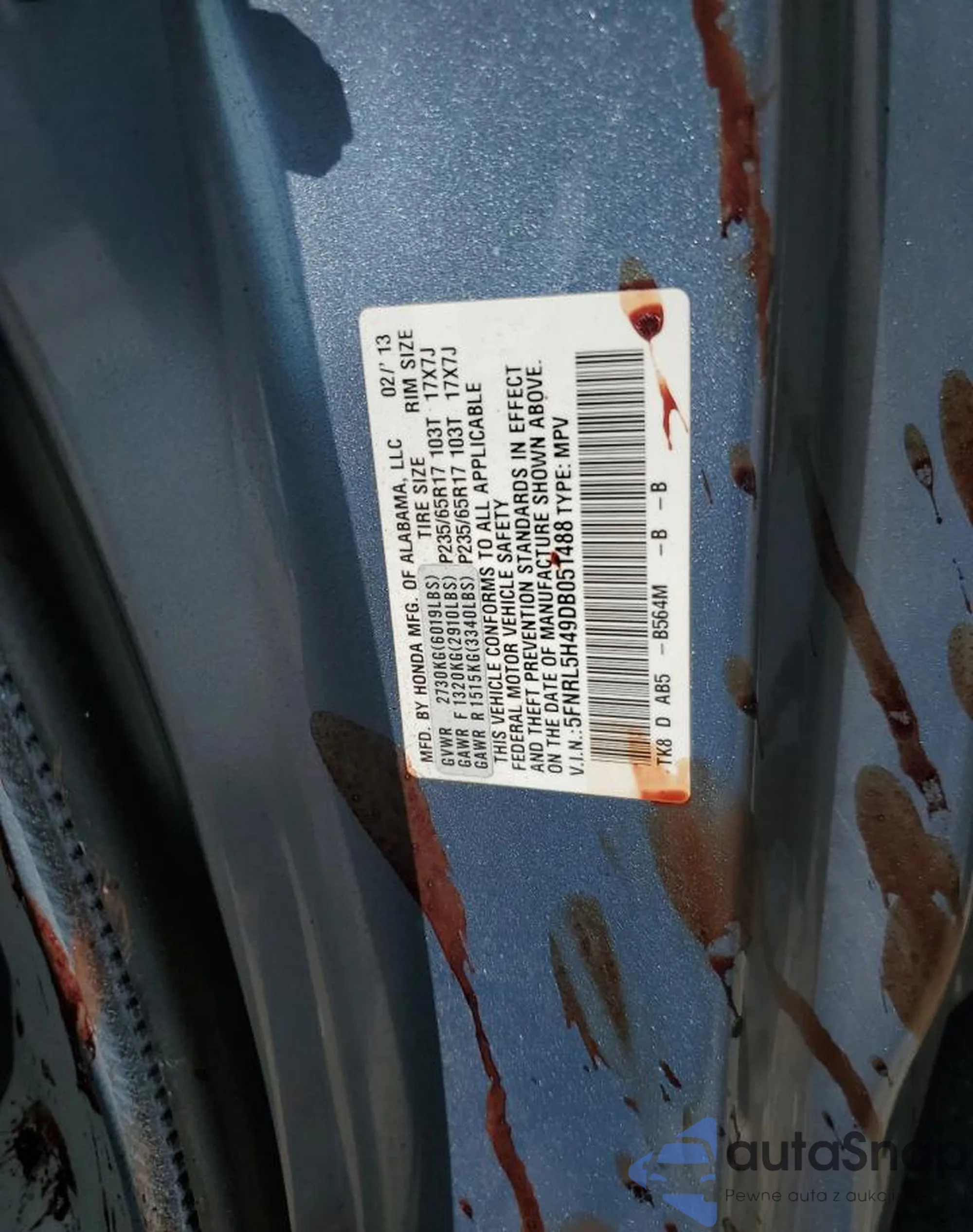 LOT: 55043125 VIN: KL4CJFSB3HB084823