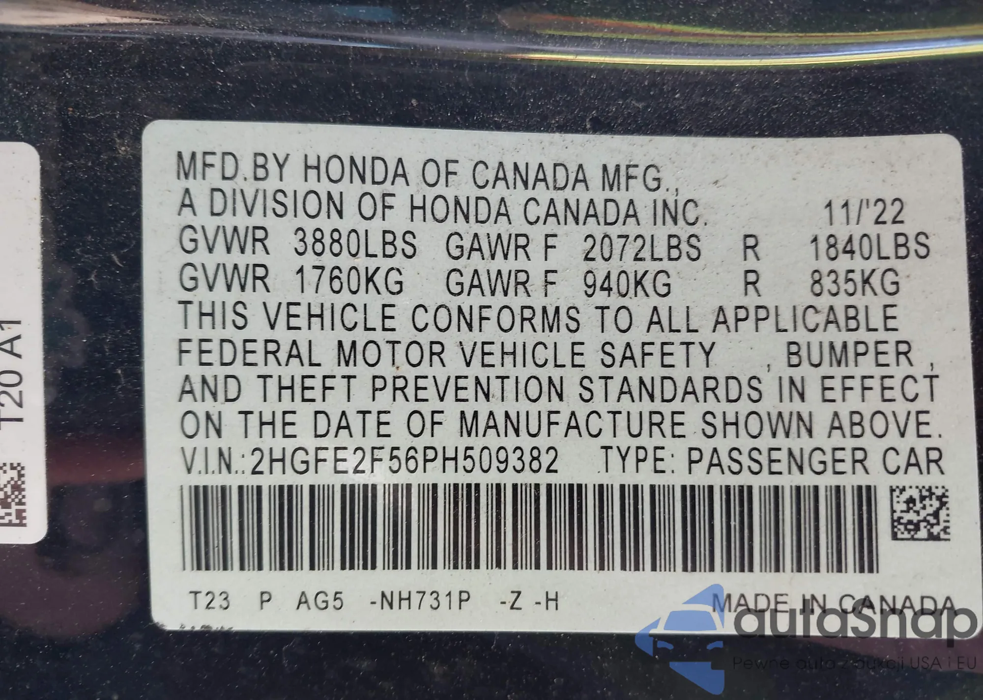 • VIN 2HGFB2F93CH331419