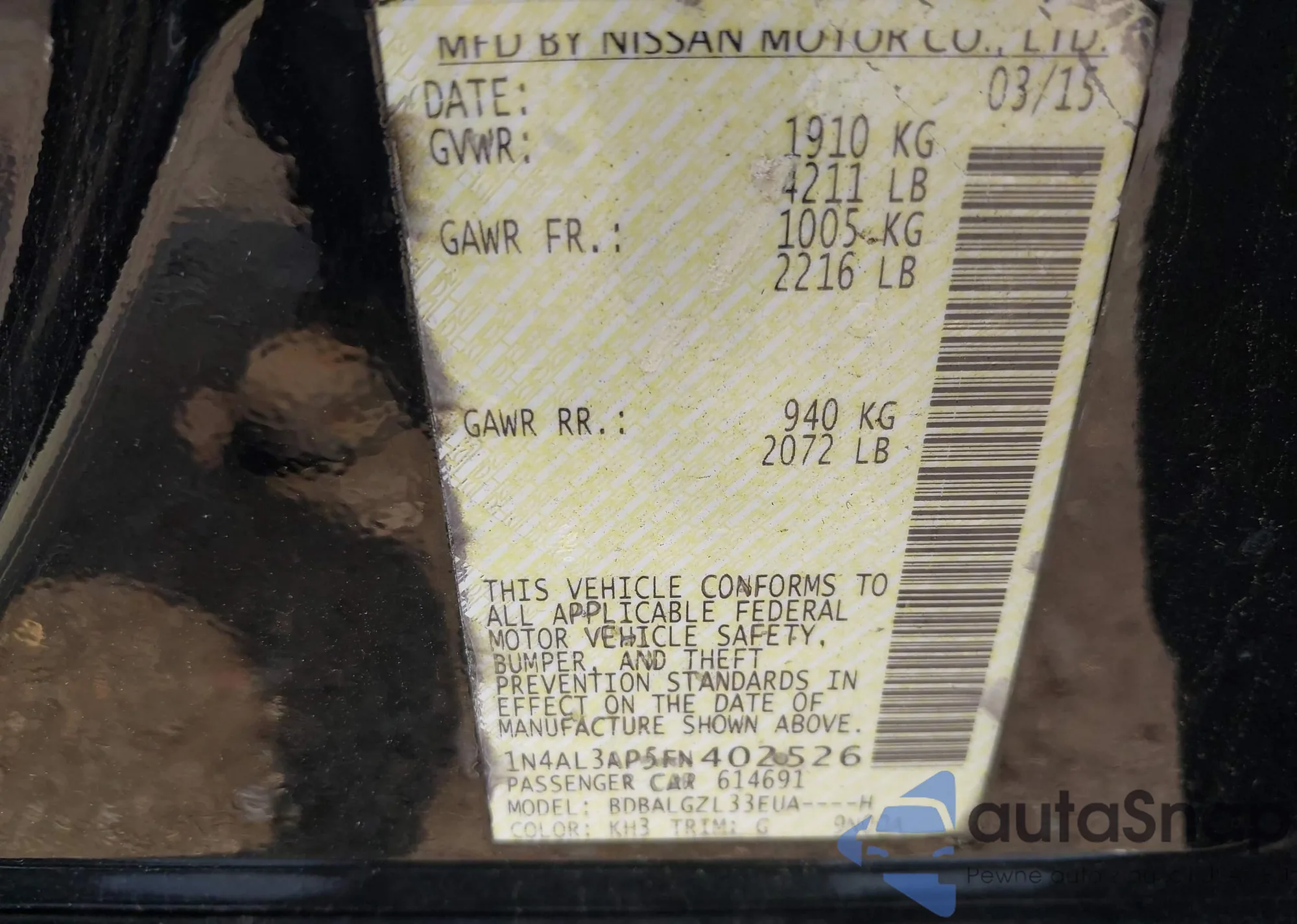 LOT: 42605163 VIN: JTDKN3DU5A0165942