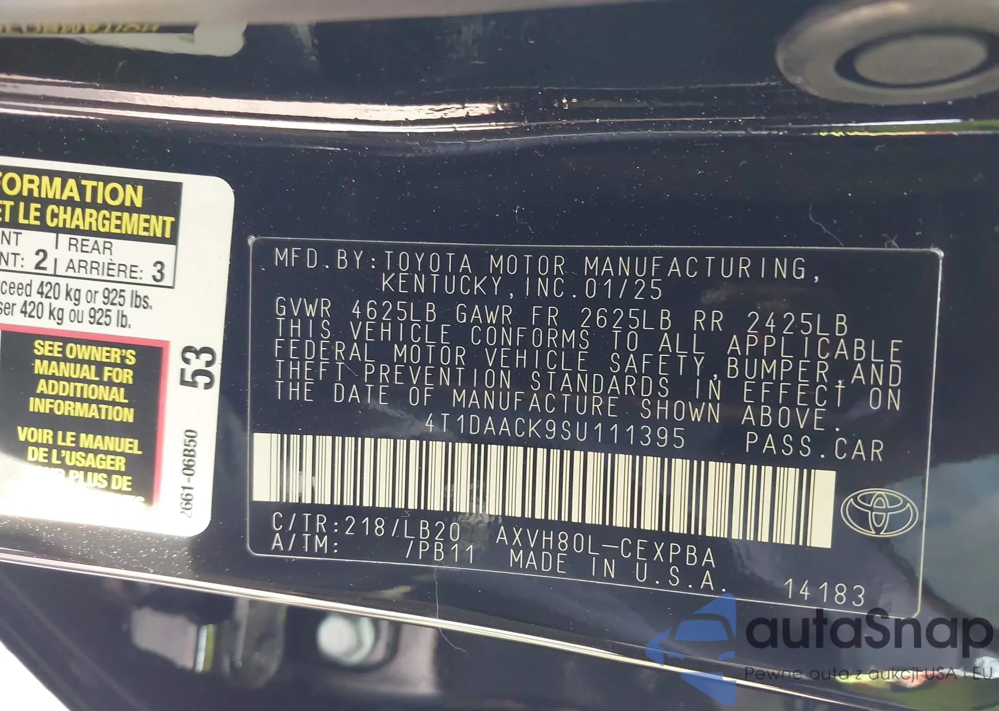 LOT: 41782794 VIN: 4T1DAACK9SU111395