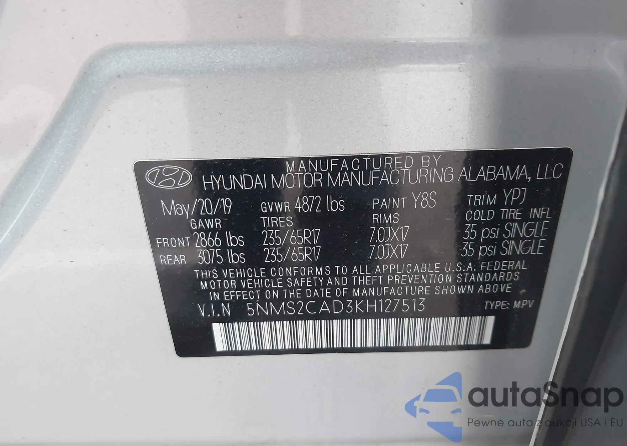 • VIN 5NMS2CAD3KH127513
