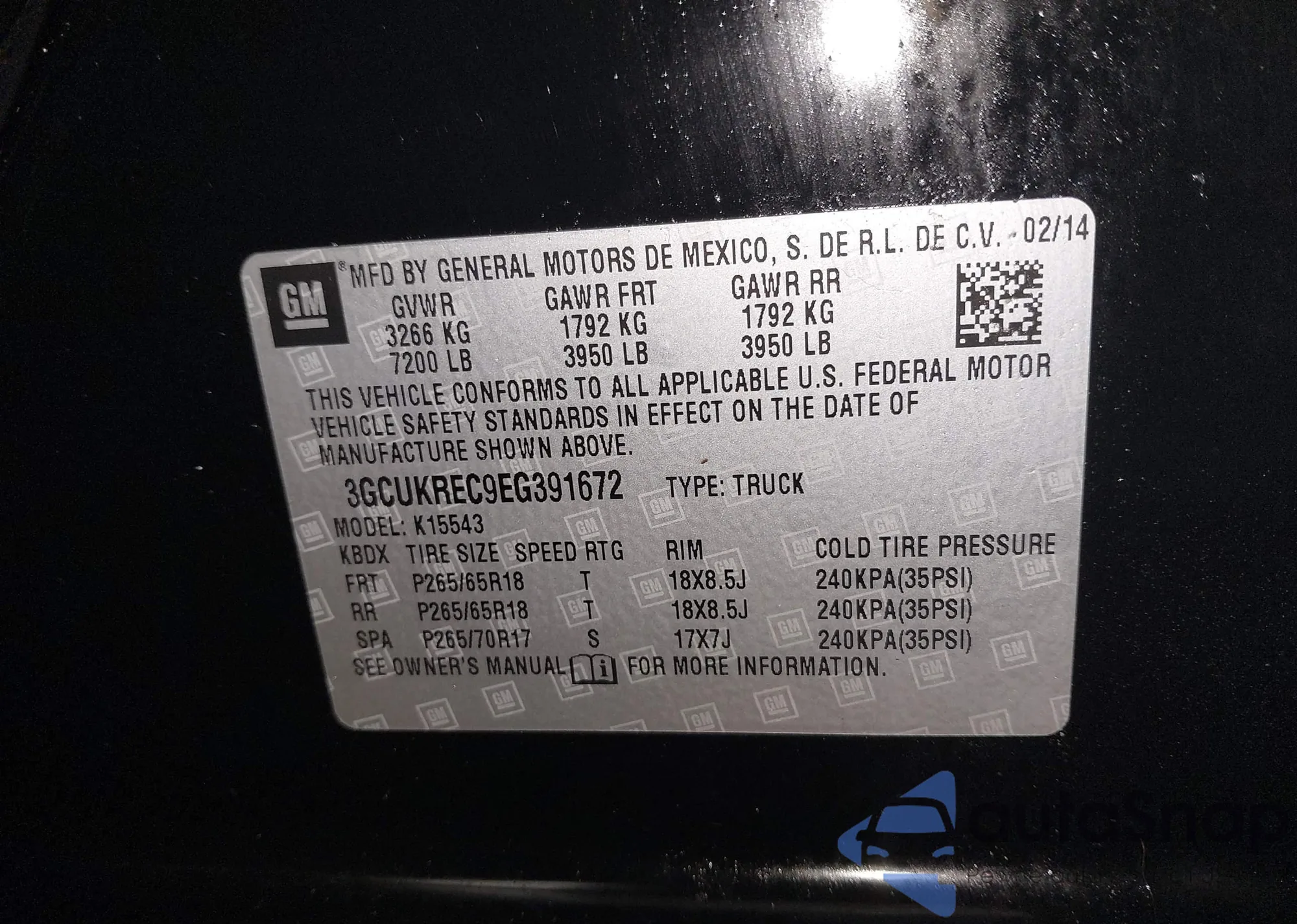 • VIN 3GCUKREC9EG391672