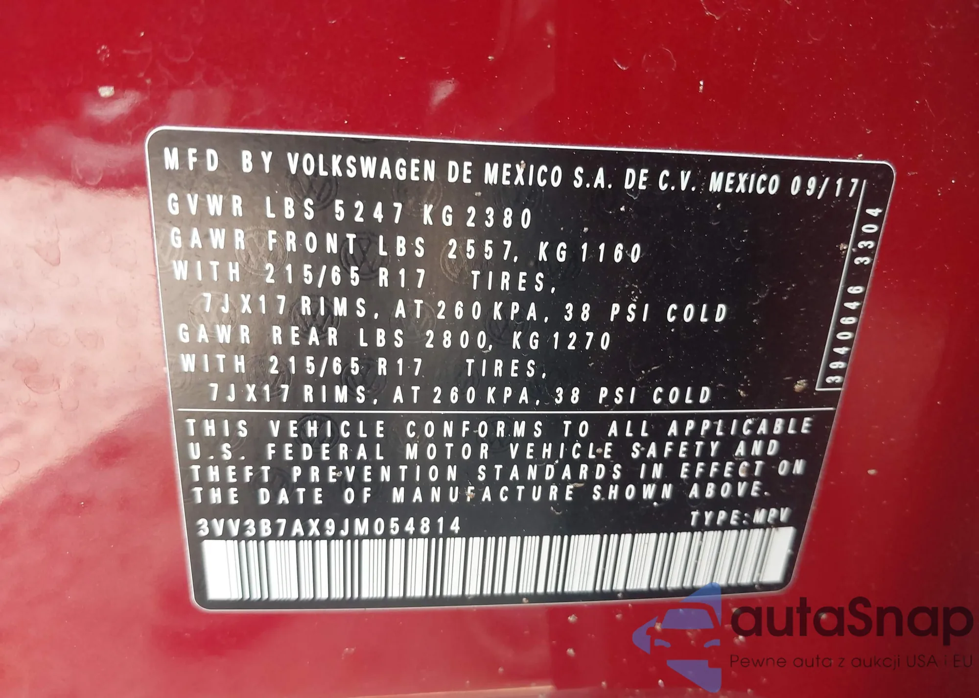 • VIN 3VV3B7AX9JM054814