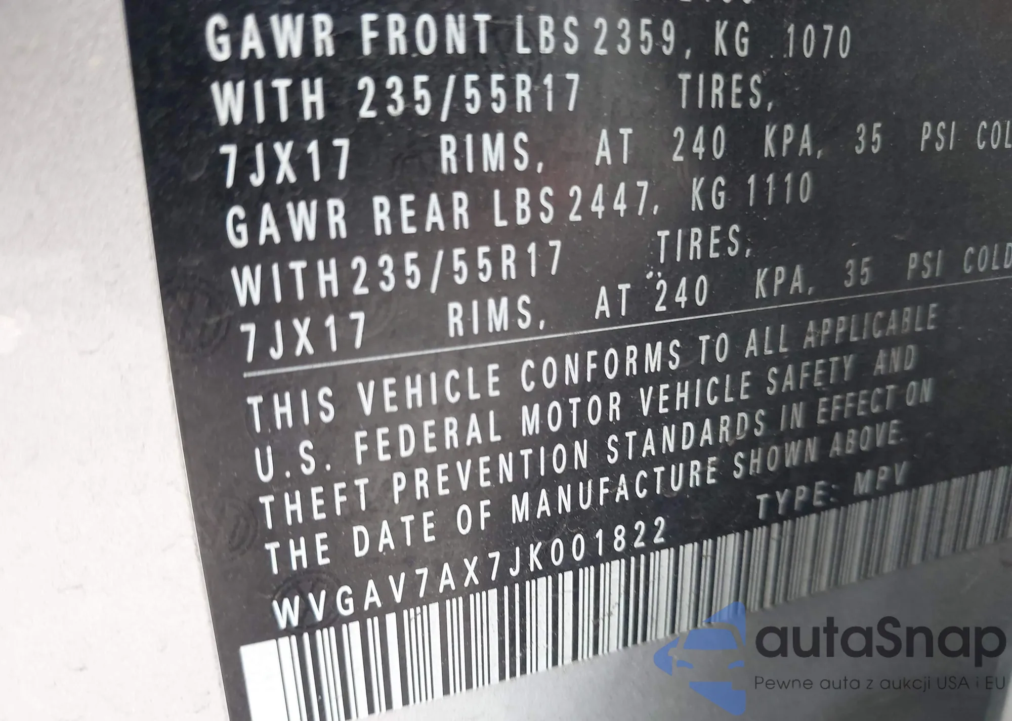 • VIN WVGAV7AX7JK001822