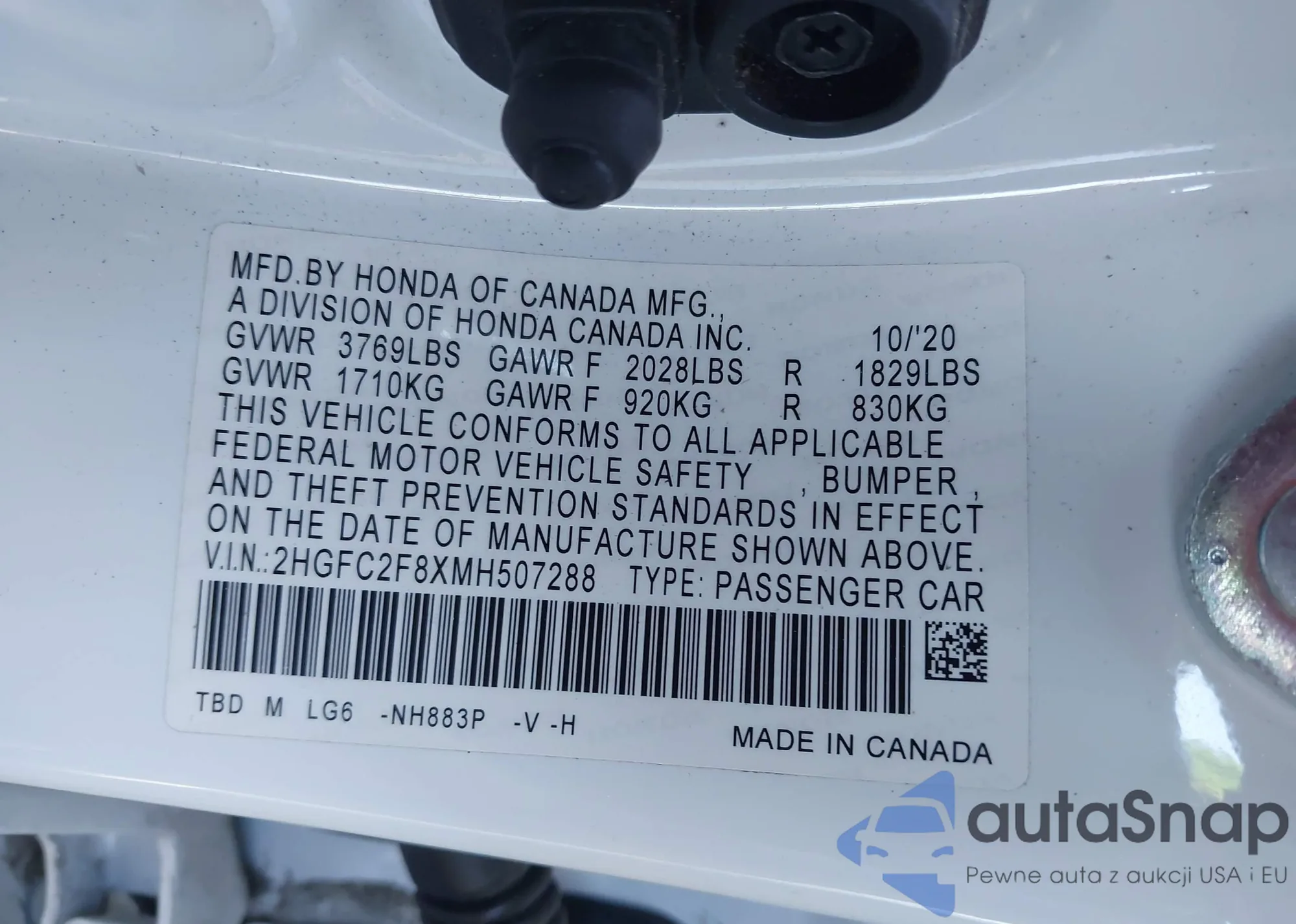 • VIN 2HGFC2F8XMH507288