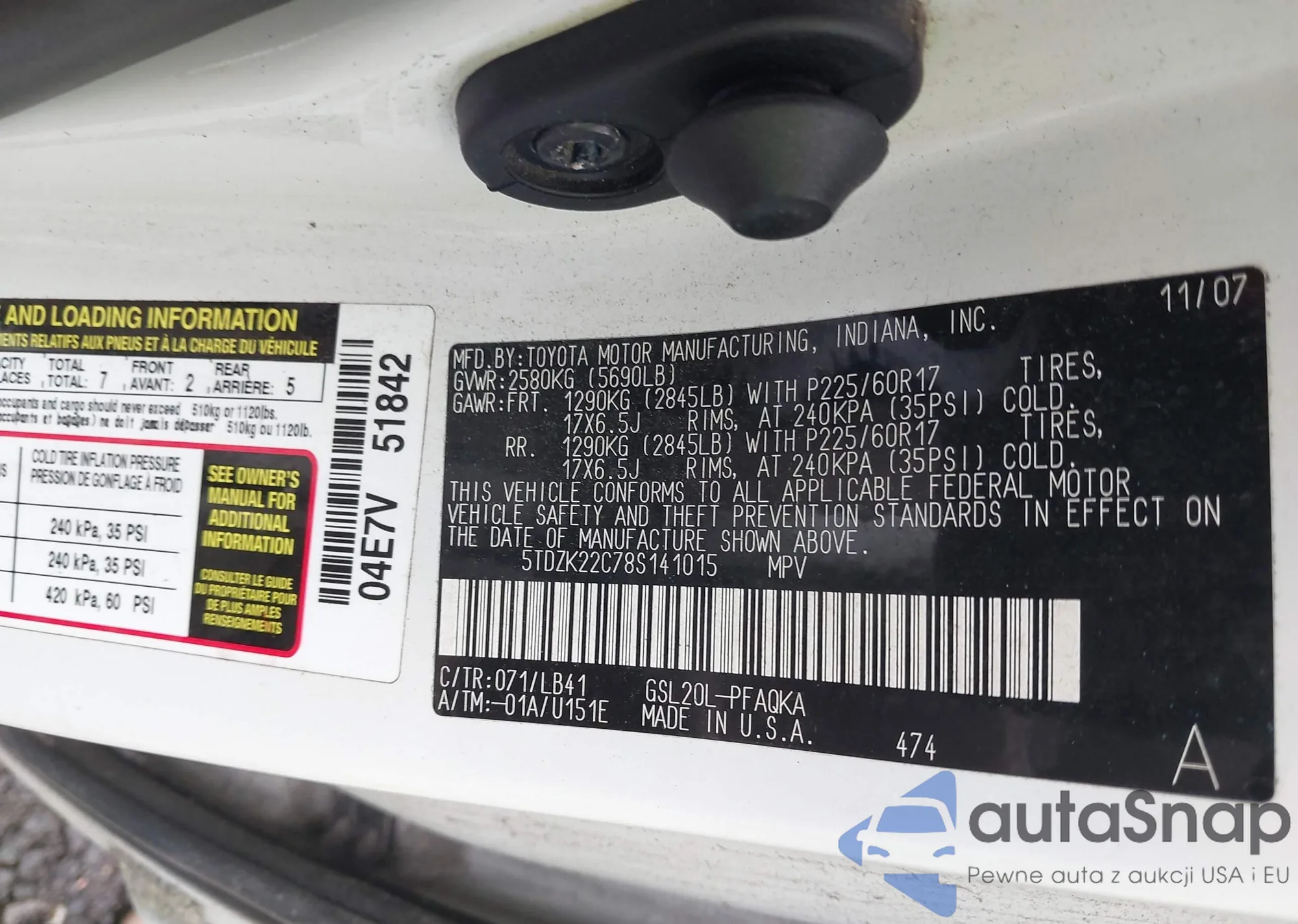 • VIN 1D8GT28K07W683401