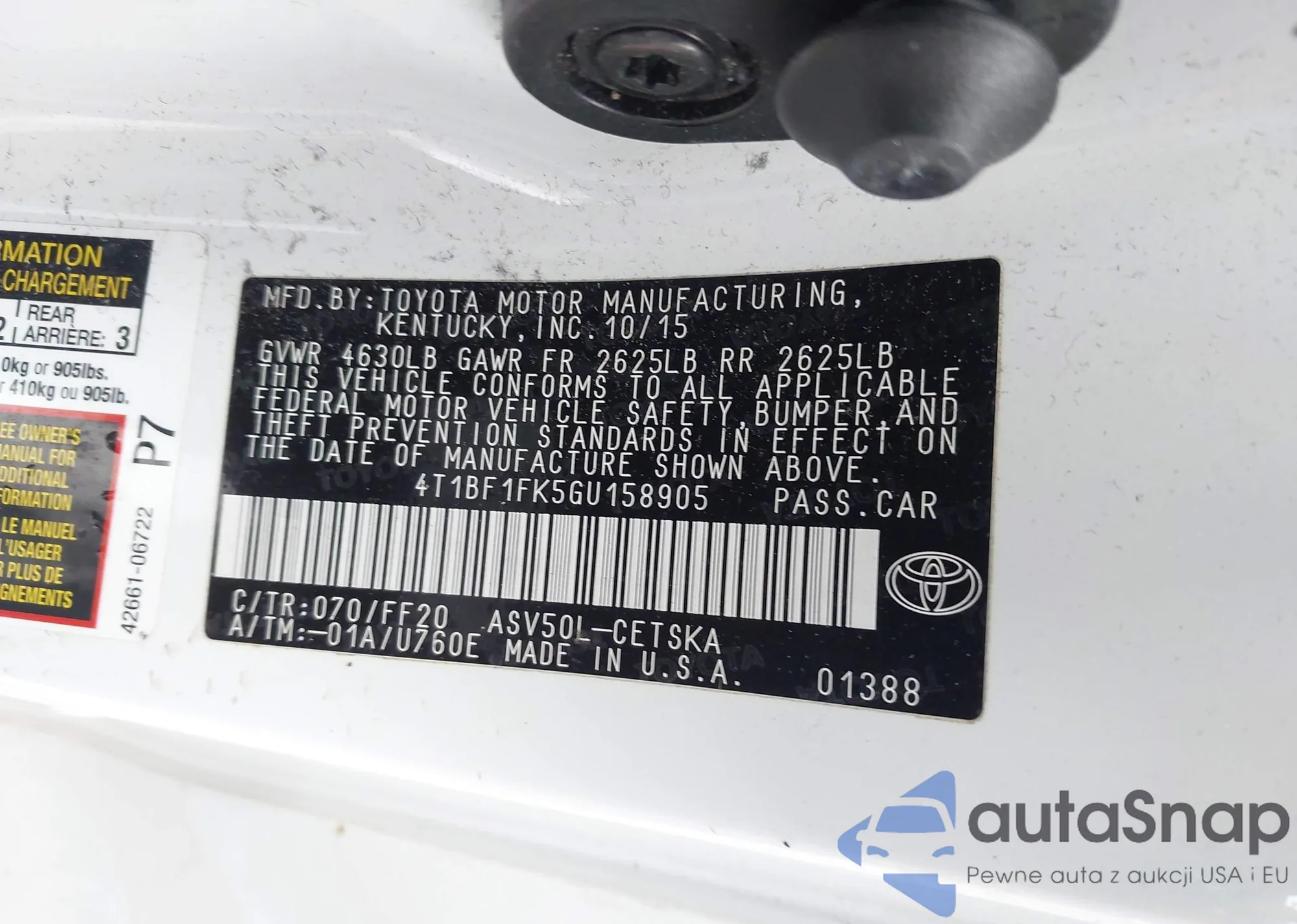 • VIN 4T1BF1FK5GU158905