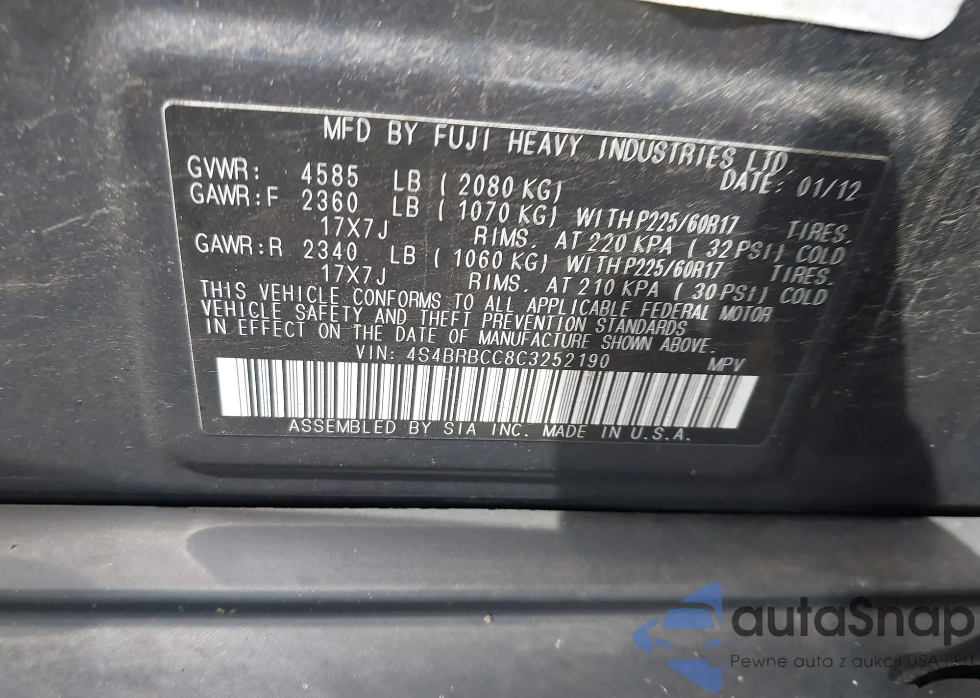 LOT: 42638064 VIN: 4S4BRBCC8C3252190