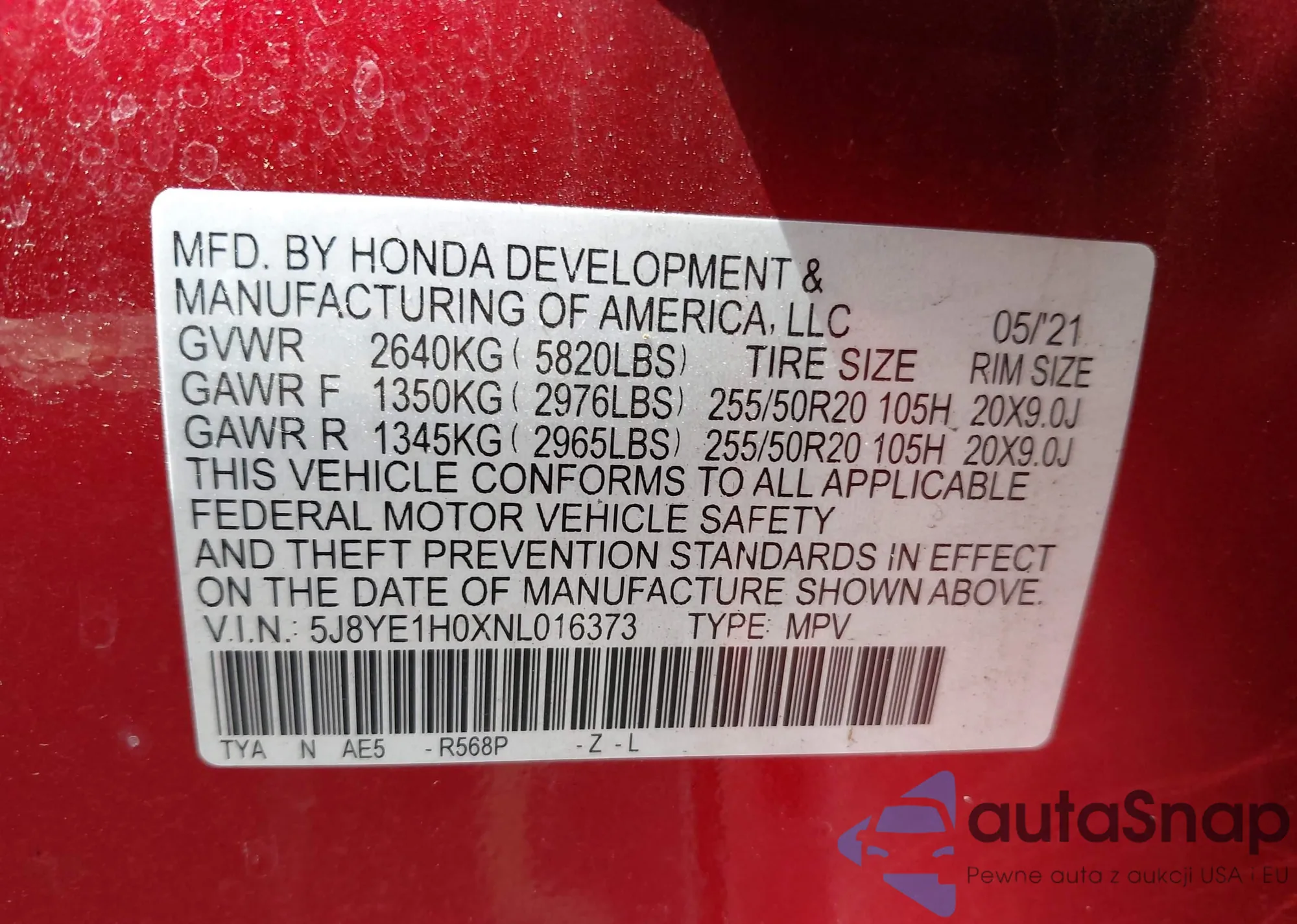 • VIN 5TFKU4HN5FX005814