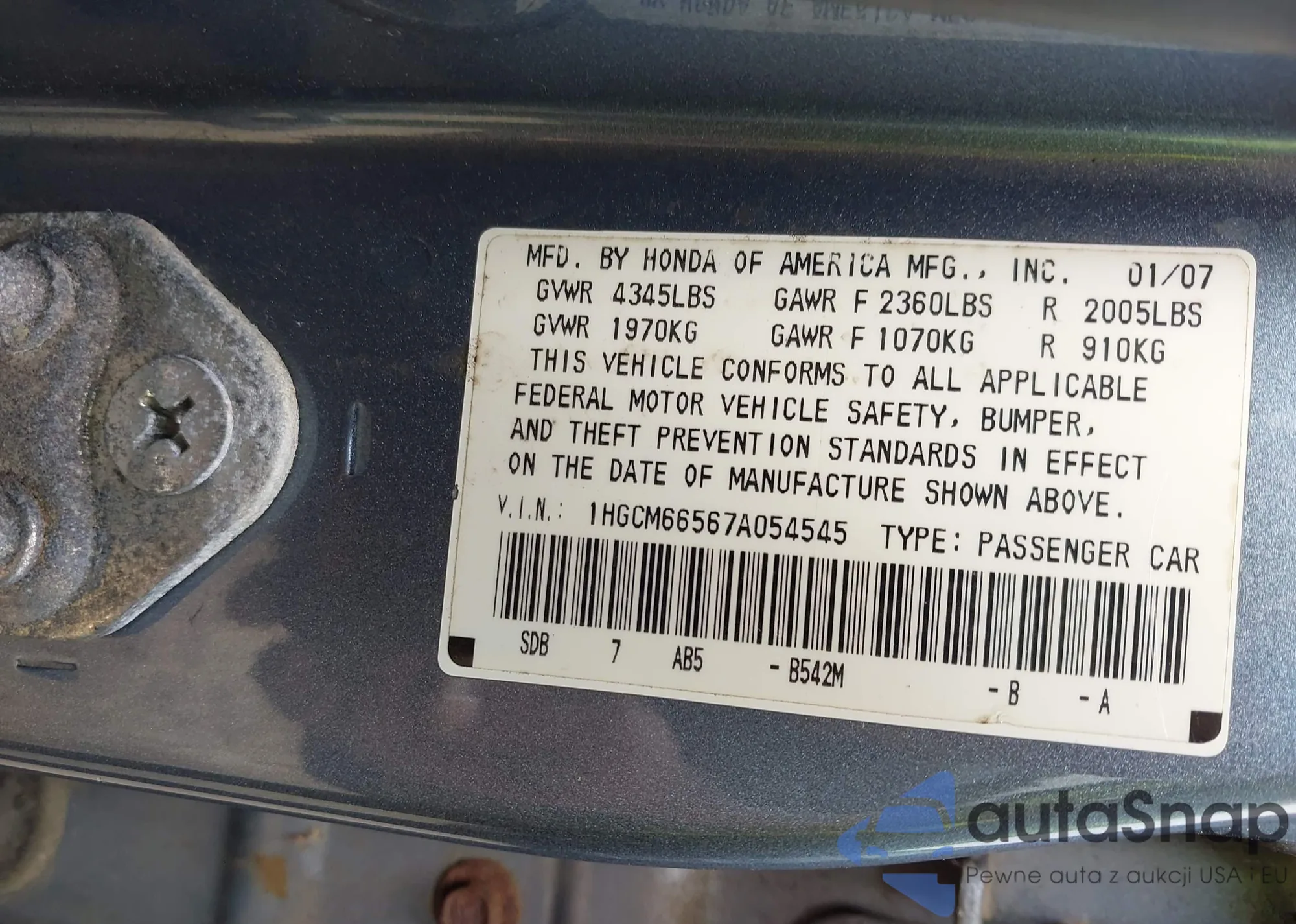 LOT: 42563238 VIN: JHMGD38608S068469