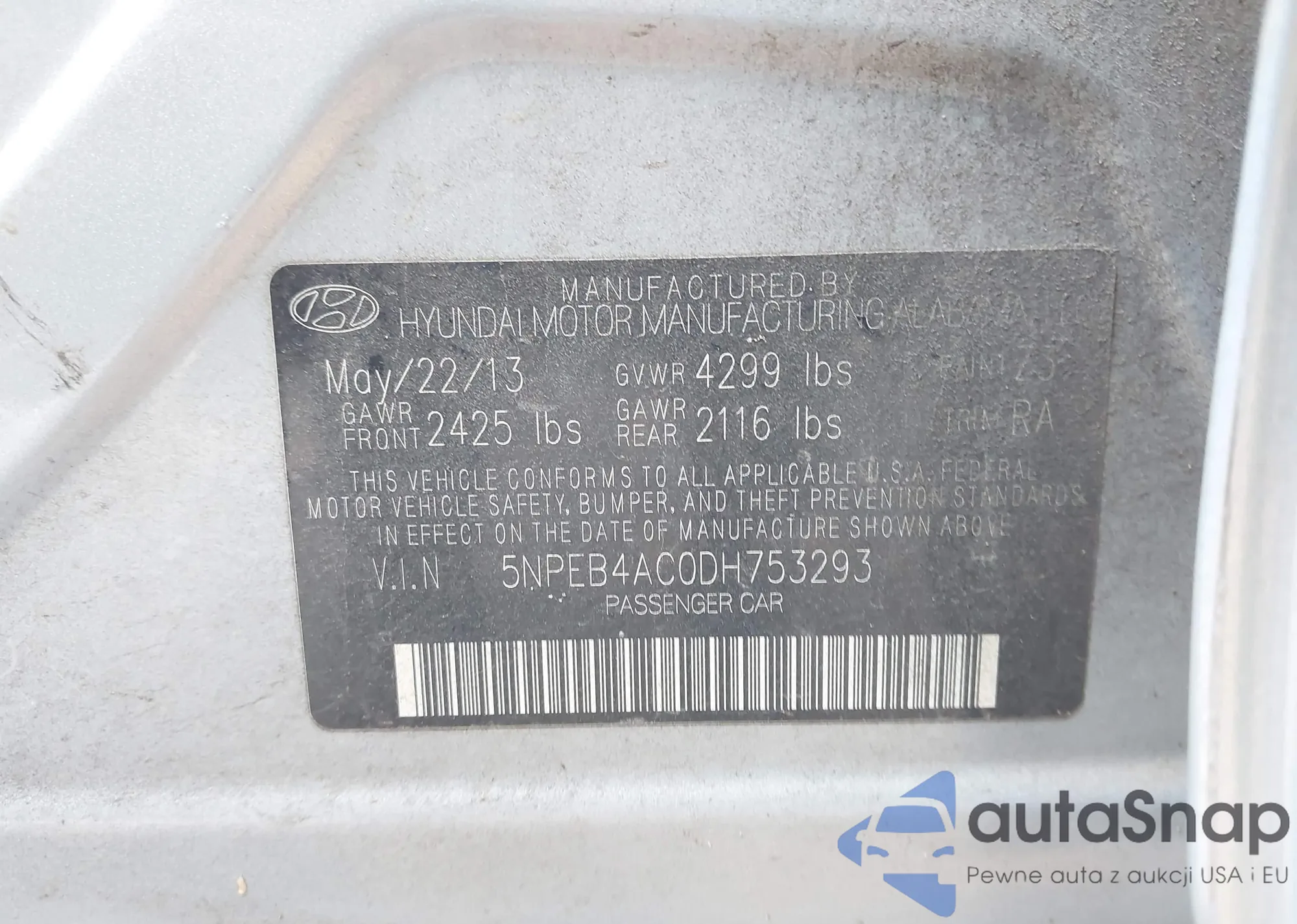 • VIN 5NPEB4AC0DH753293