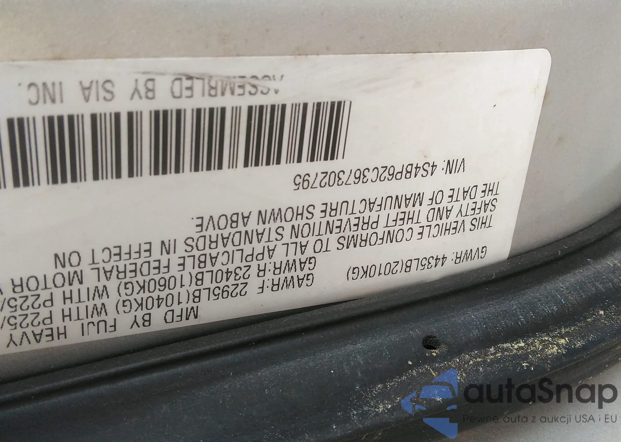 LOT: 42639039 VIN: 4S4BP62C367302795