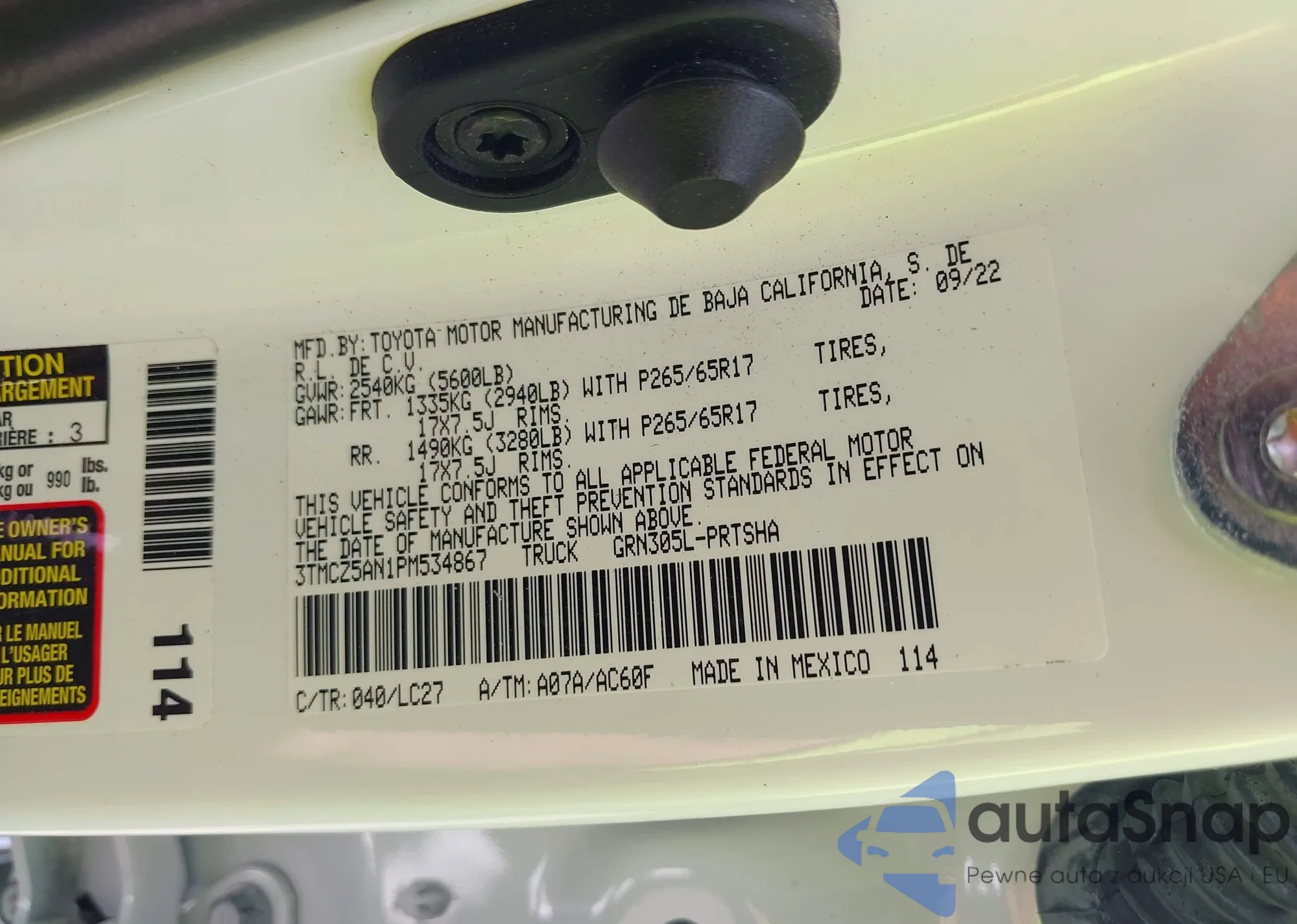 • VIN 3TMCZ5AN1PM534867