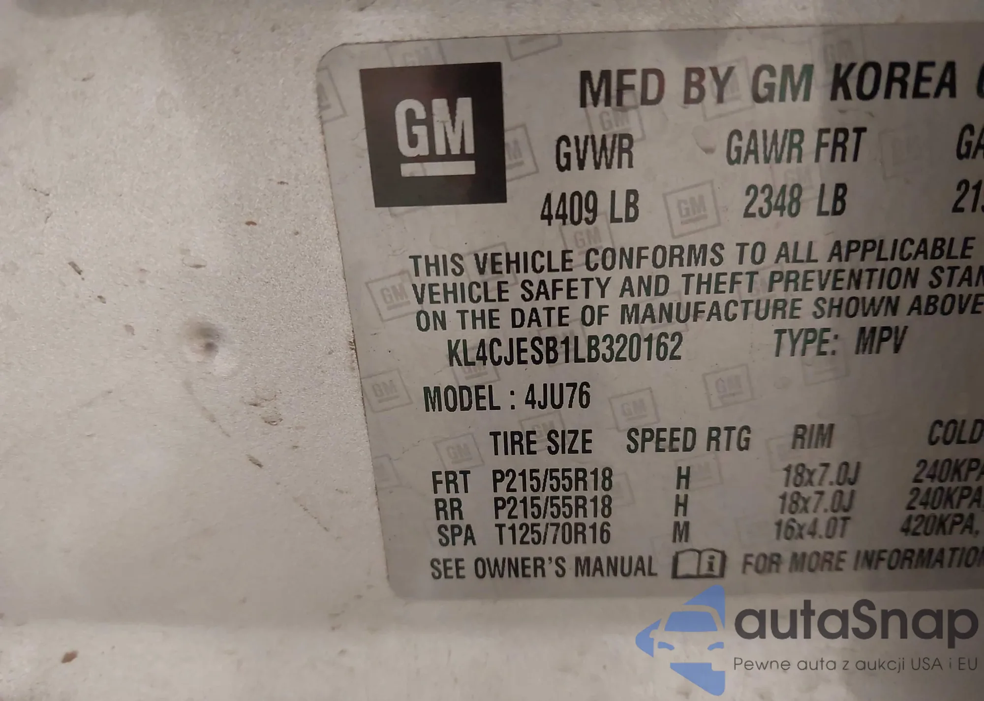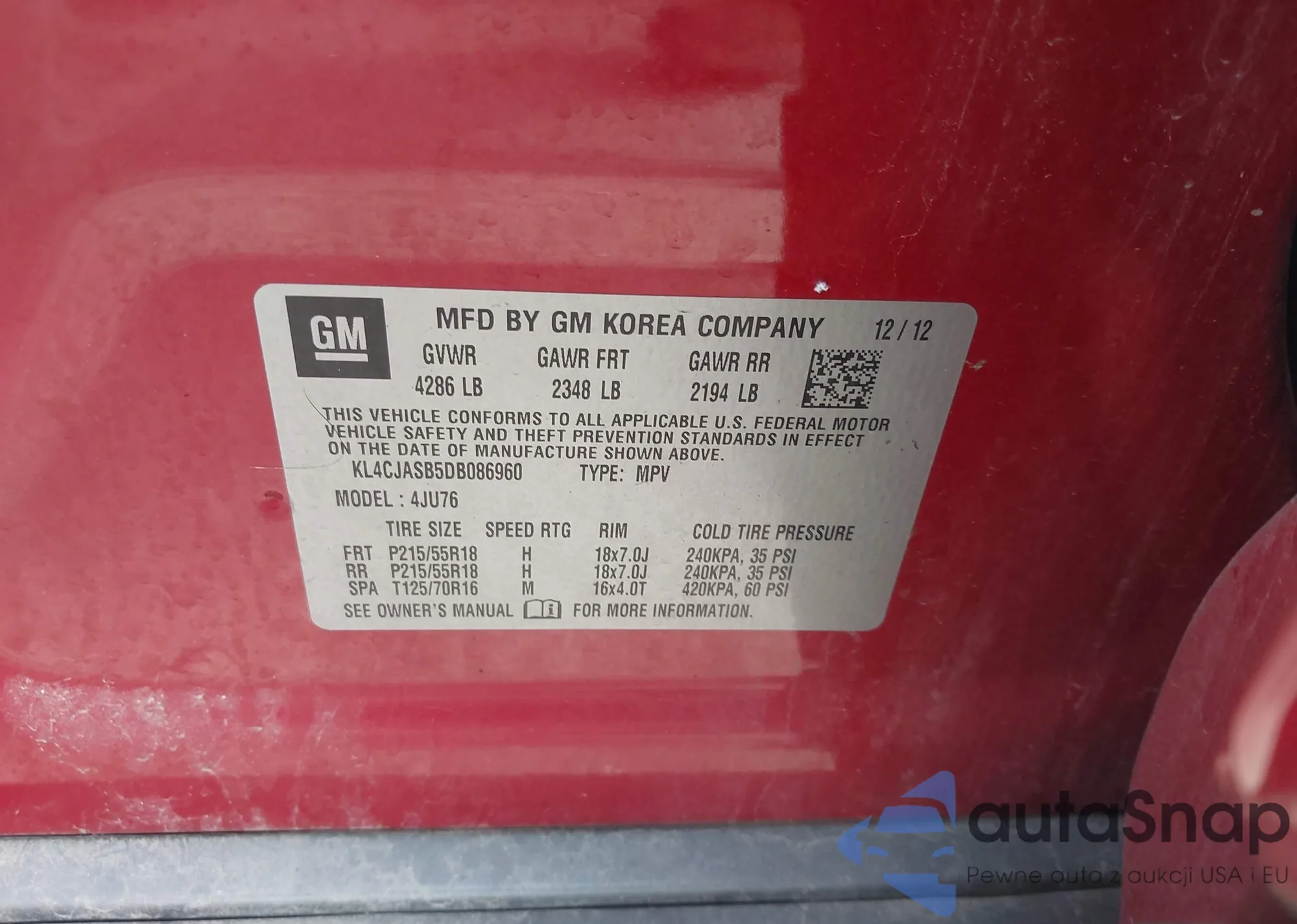• VIN KL4CJASB5DB086960