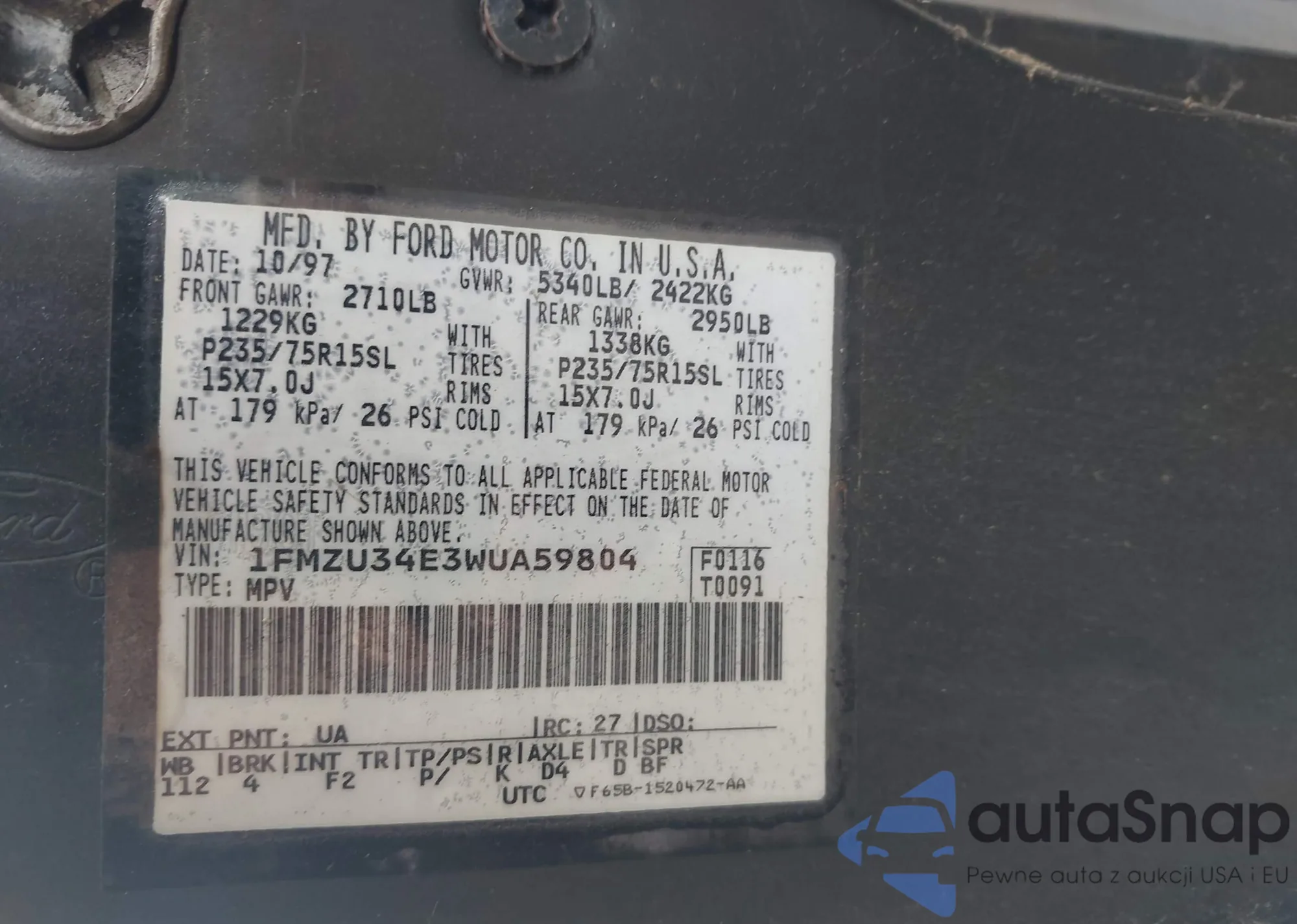 LOT: 42480134 VIN: 1FMZU34E3WUA59804