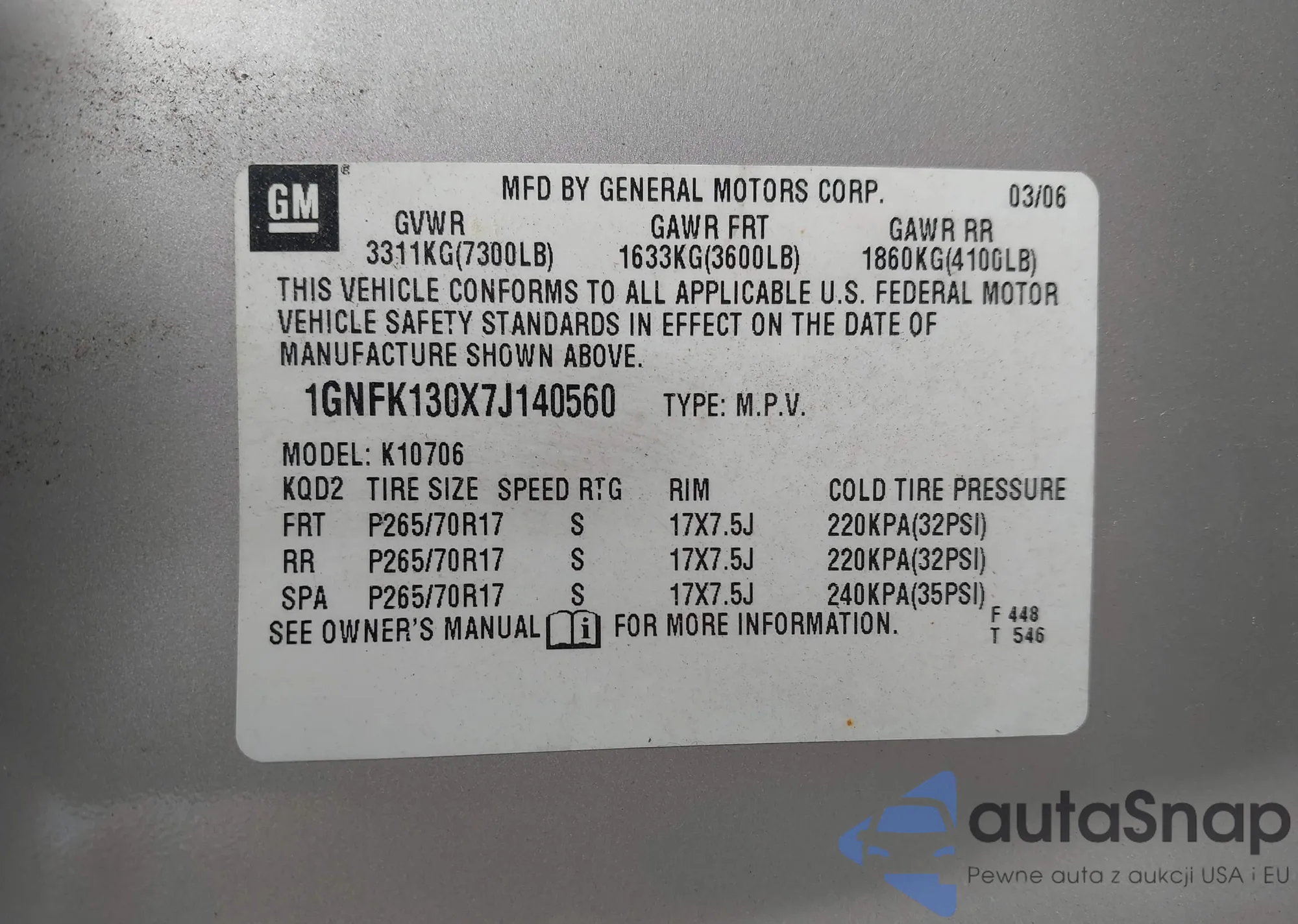 LOT: 42509399 VIN: 1GNFK130X7J140560