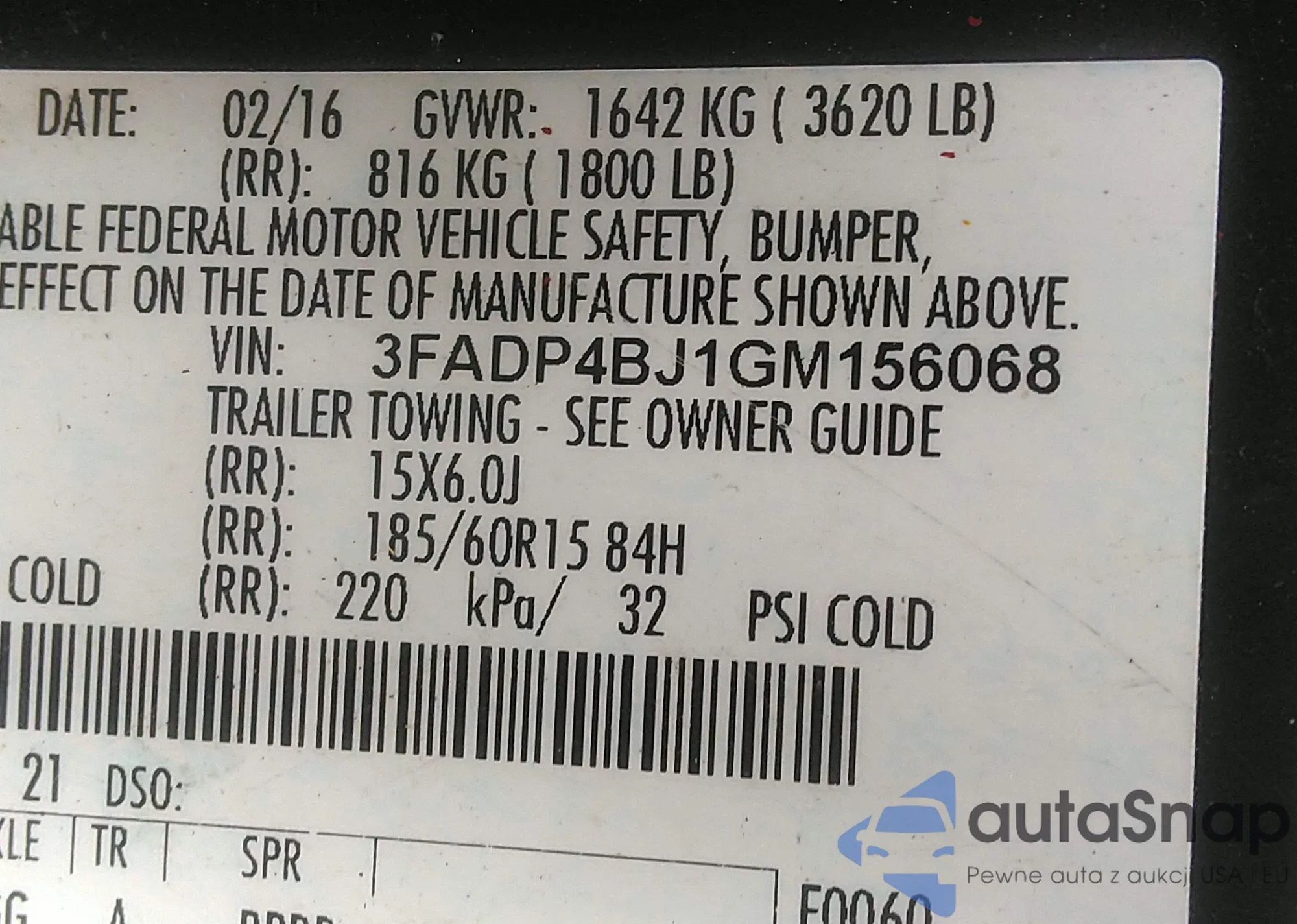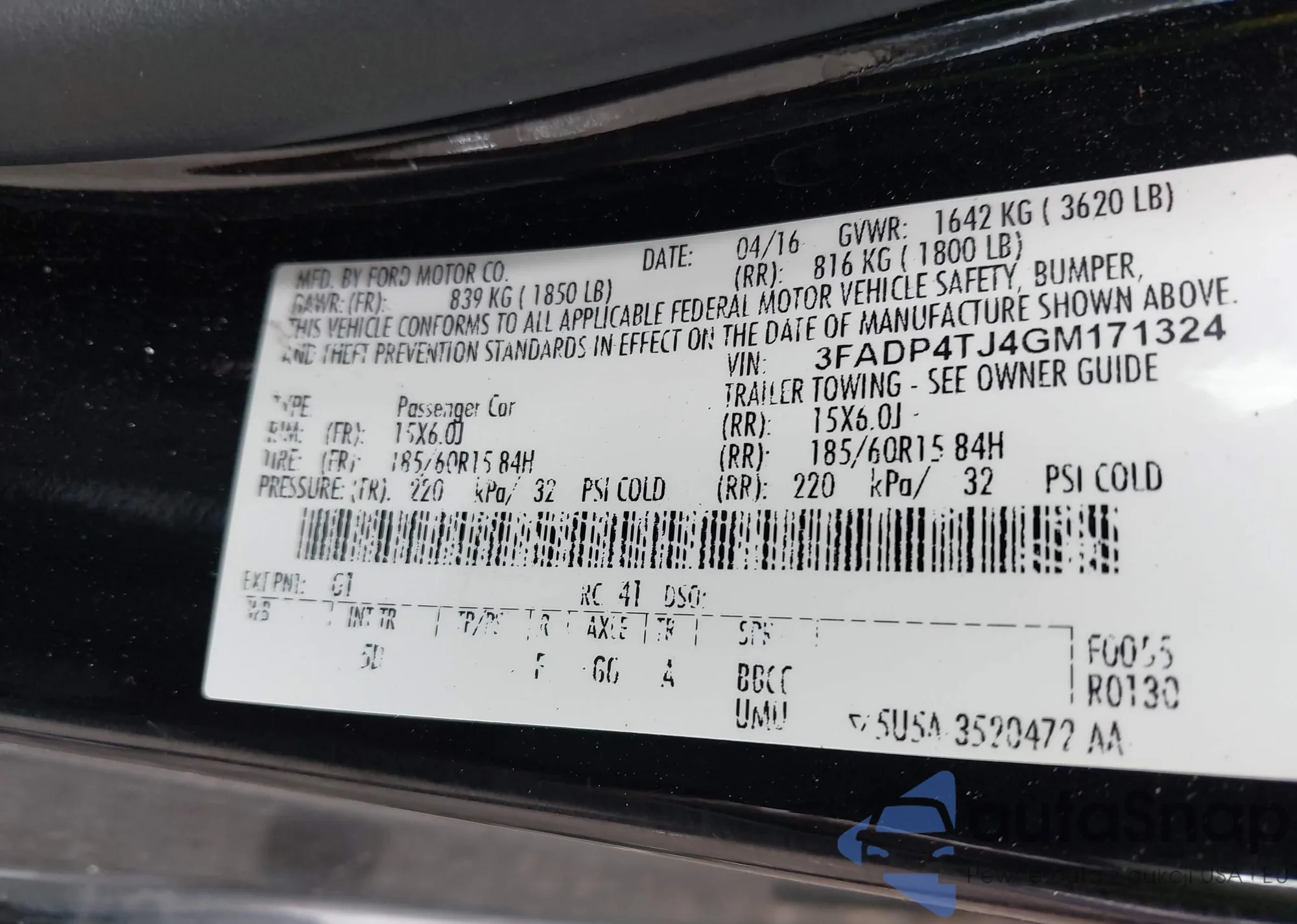 LOT: 42580374 VIN: 3FADP4TJ4GM171324