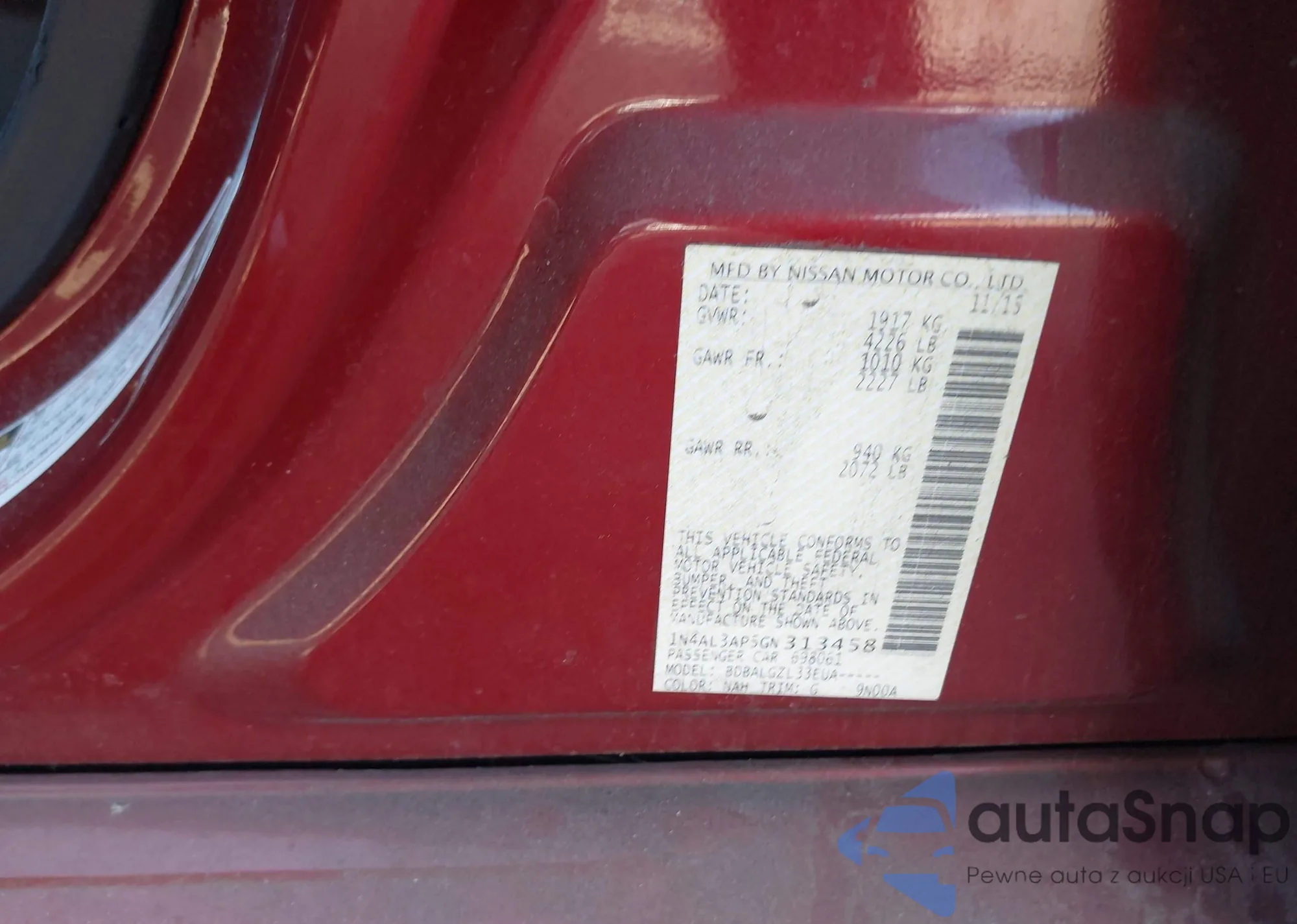 • VIN 1N4AL3AP5GN313458