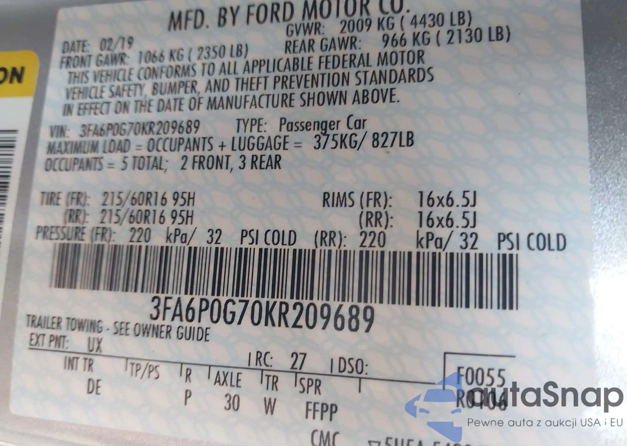 • VIN 1FAHP56S53A129814