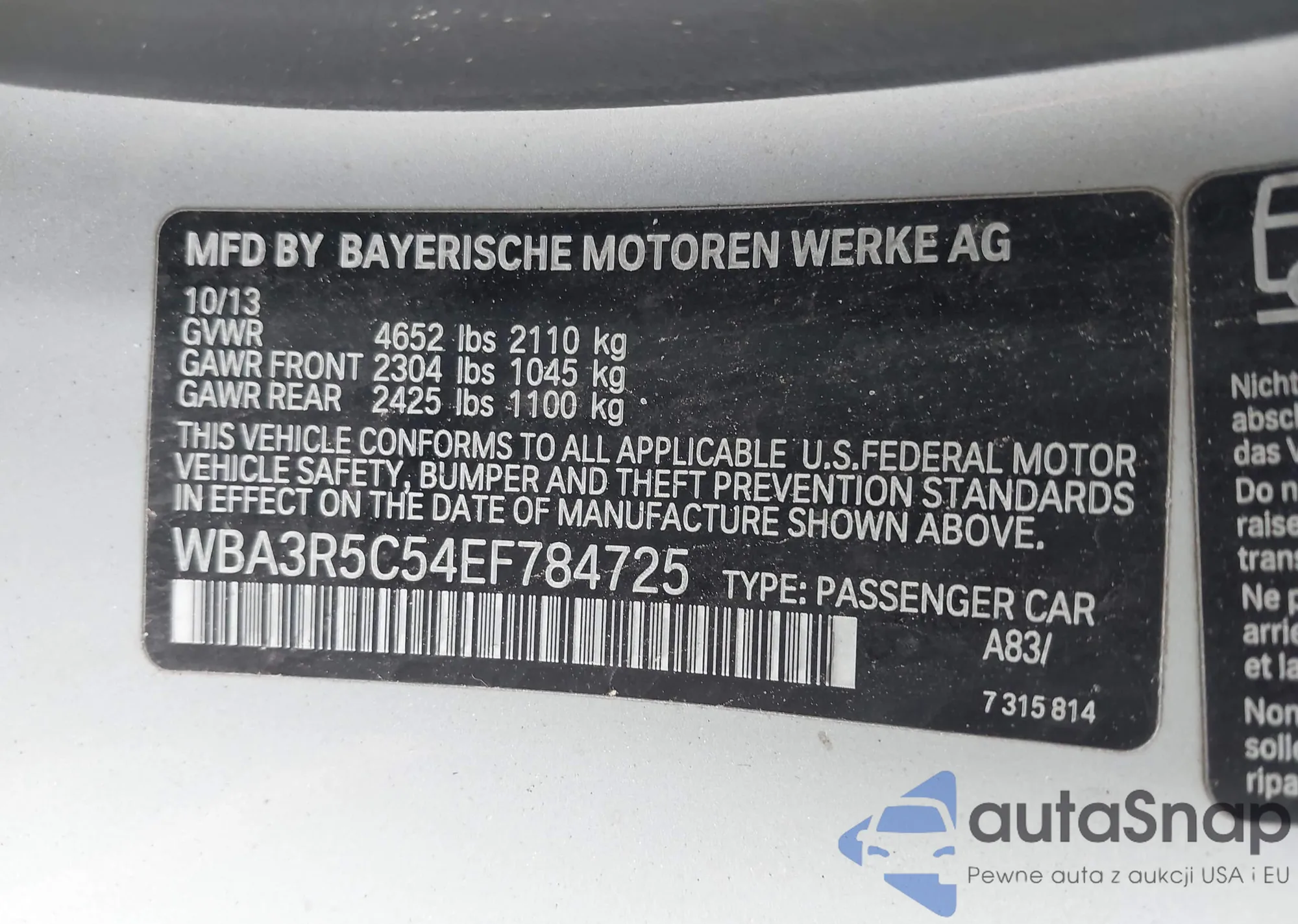 • VIN WBA3R5C54EF784725