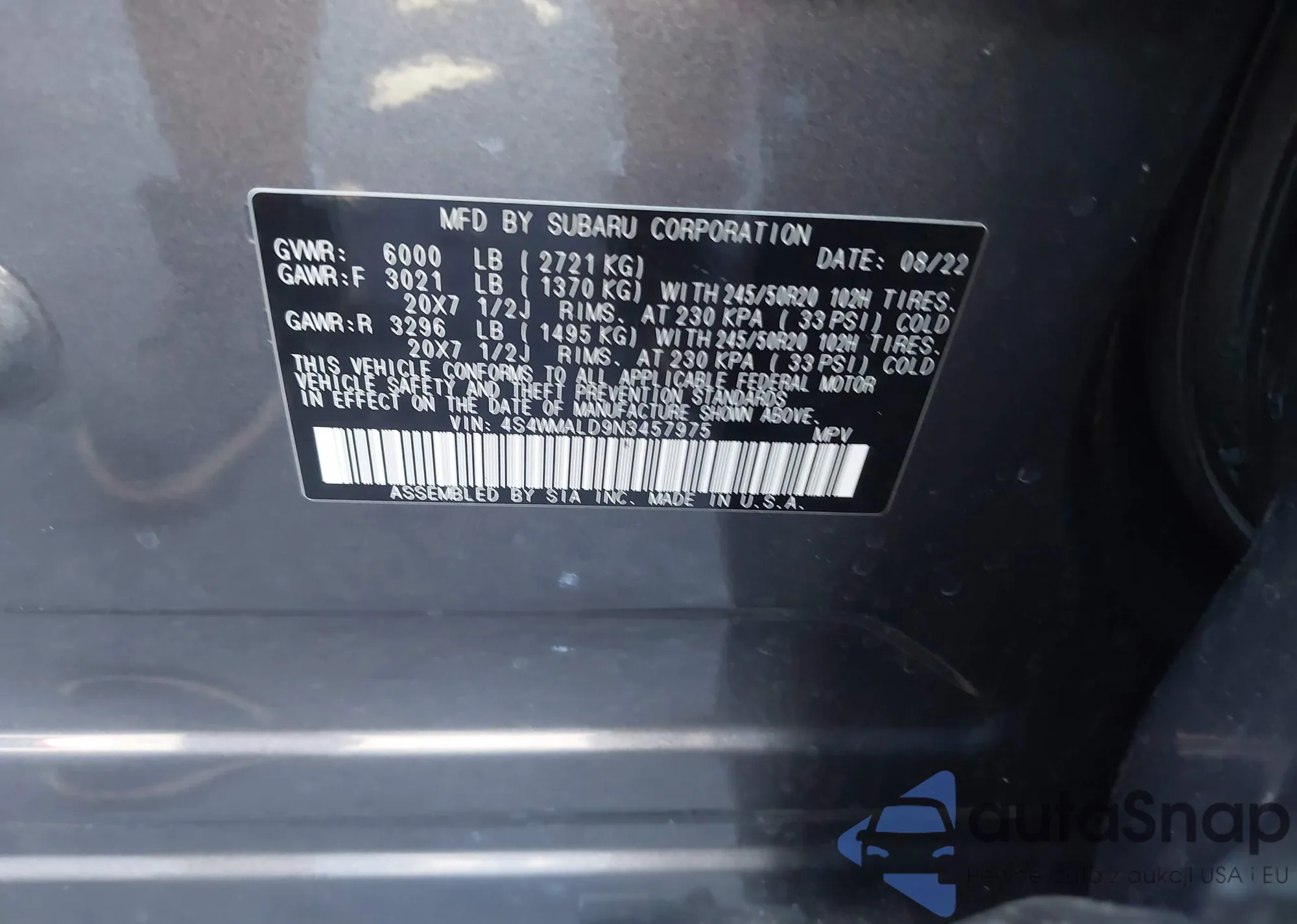 LOT: 42345480 VIN: 4S4WMALD9N3457975