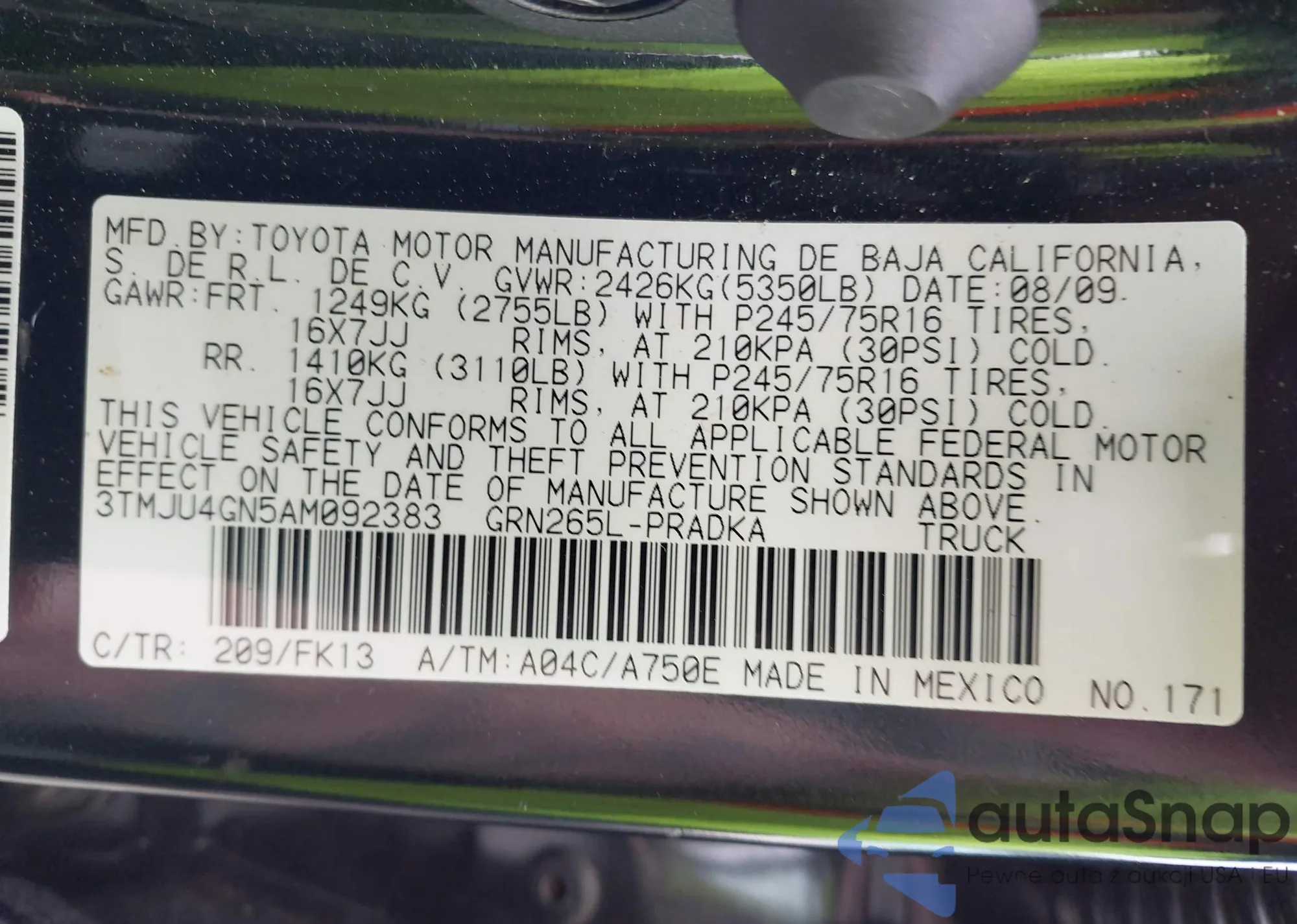 • VIN 3TMJU4GN5AM092383