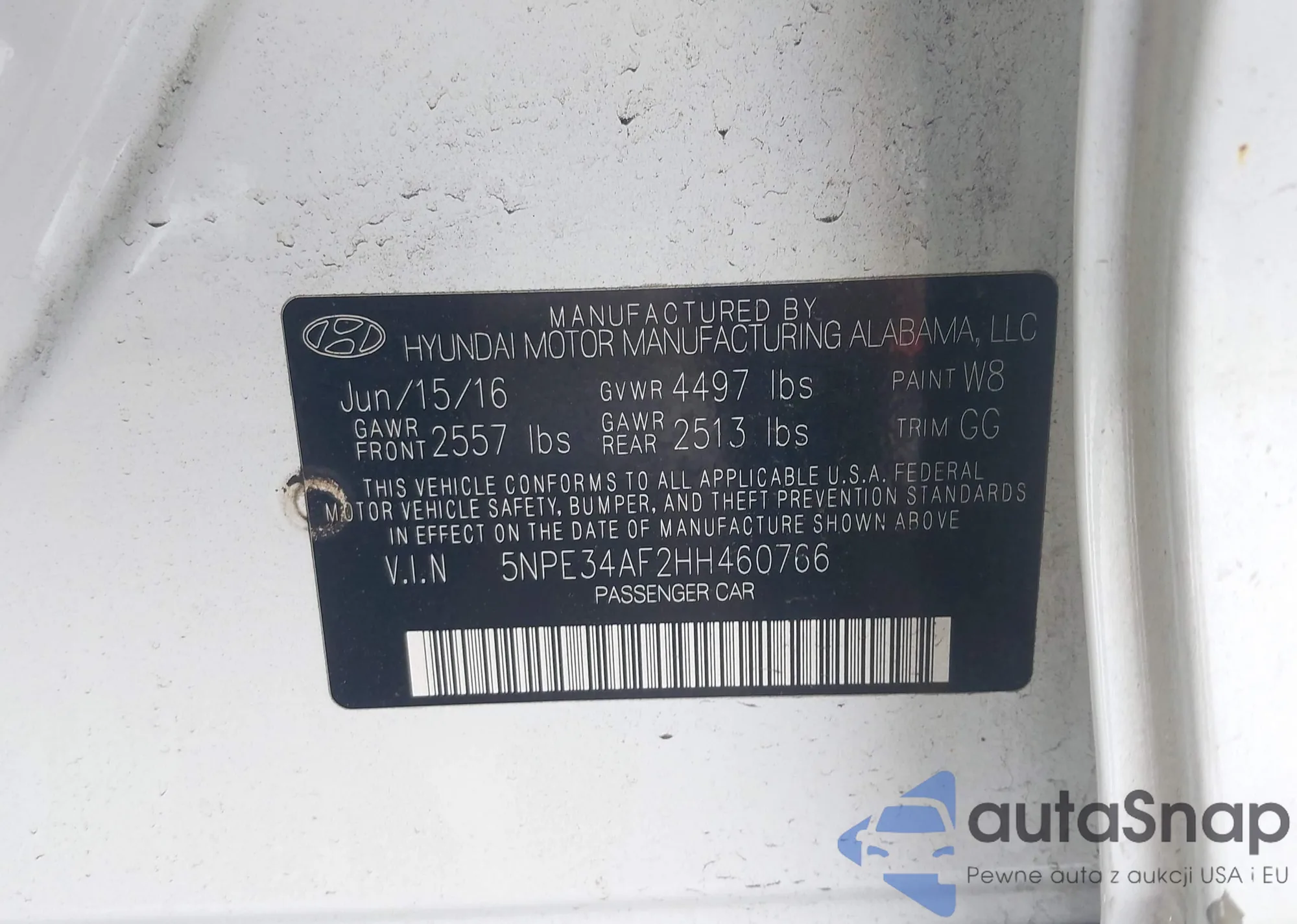 • VIN 5NPE34AF2HH460766