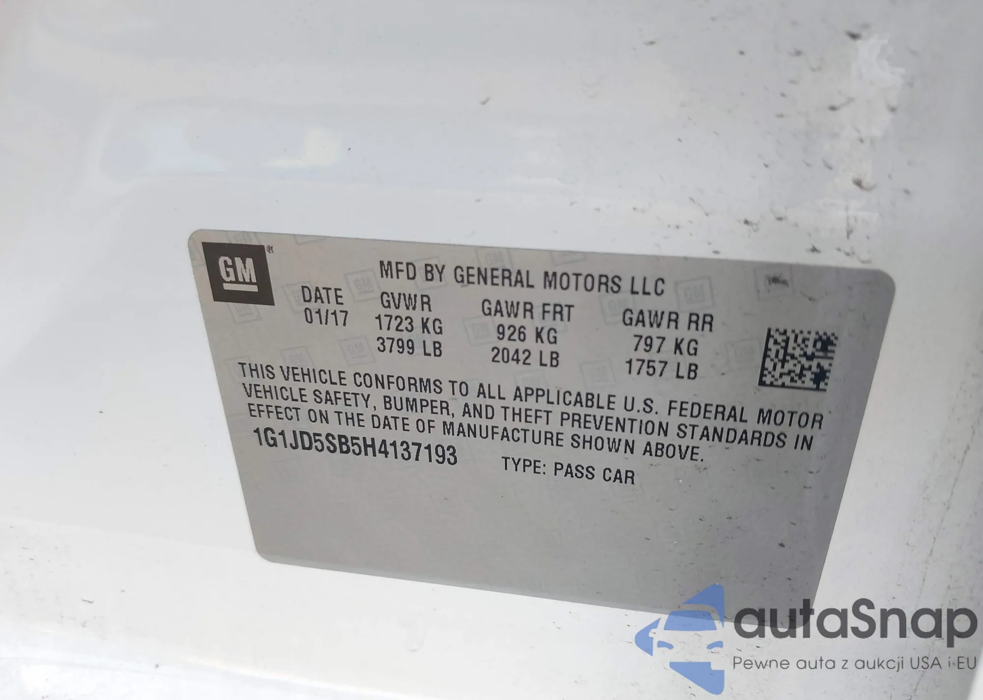 LOT: 42428562 VIN: 1G1JD5SB5H4137193
