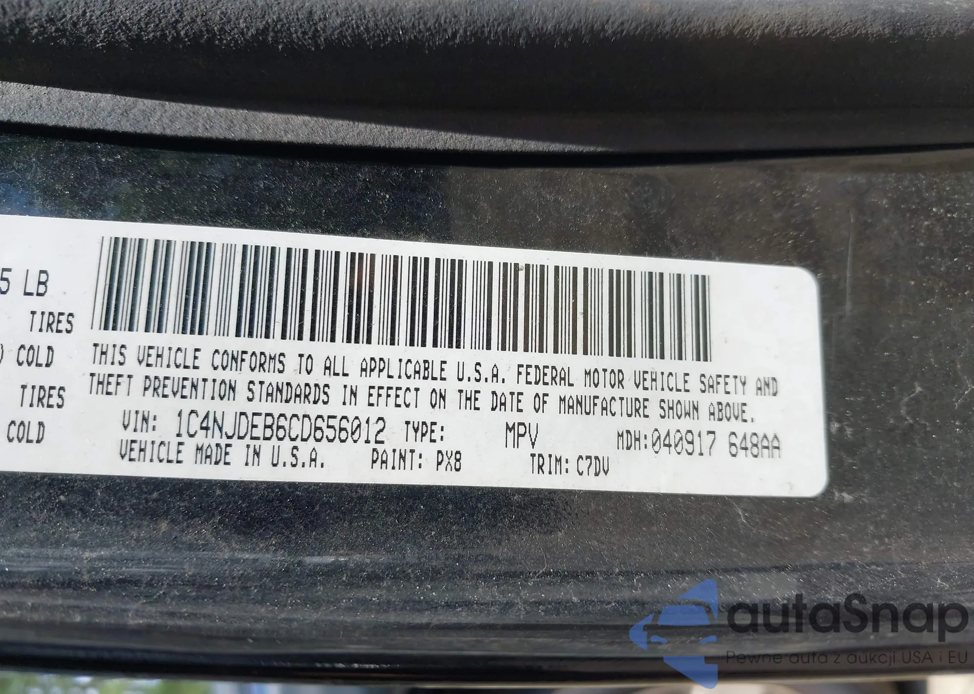 • VIN 1C4NJDEB6CD656012