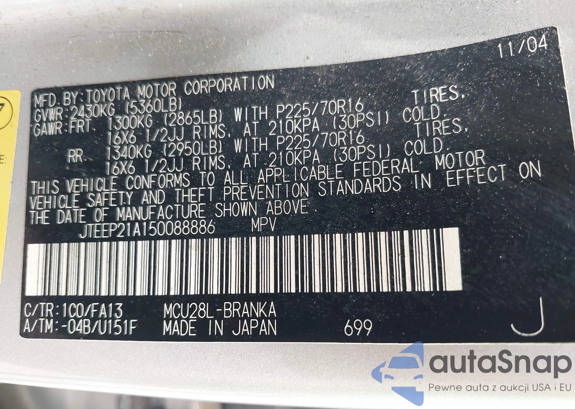 LOT: 42635294 VIN: JTEBT14R360059675