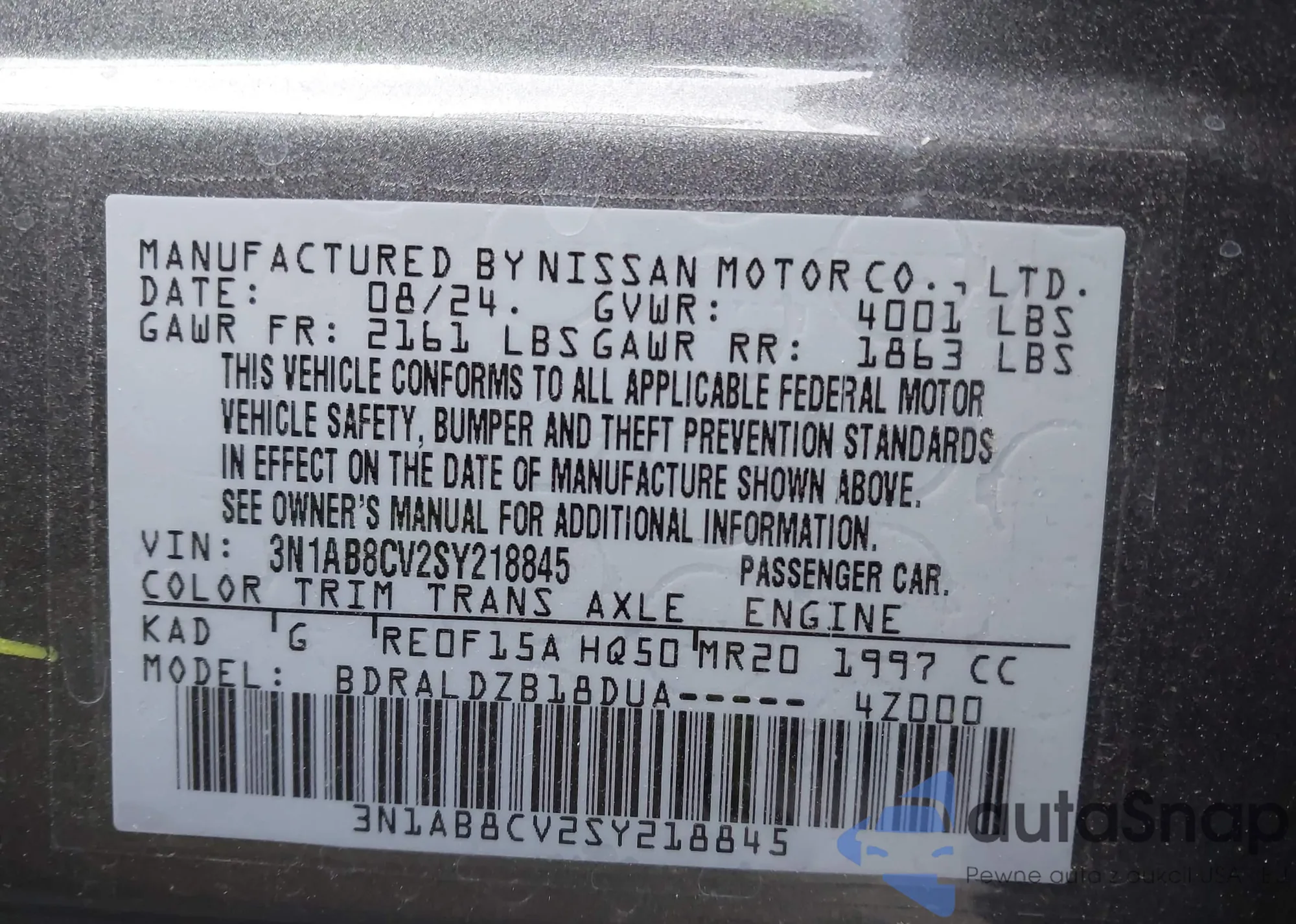 • VIN 3N1AB8CV2SY218845