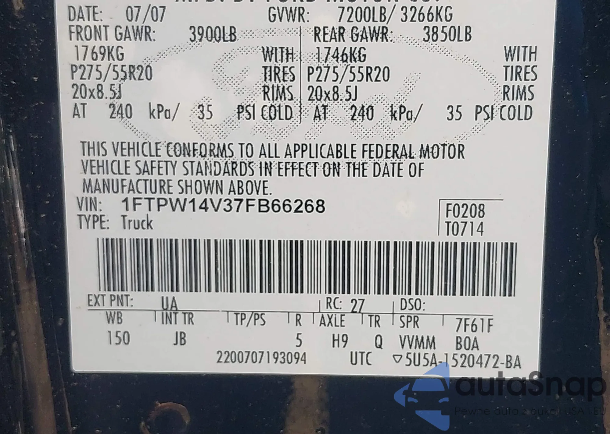 • VIN 1FMEU33897UA05807