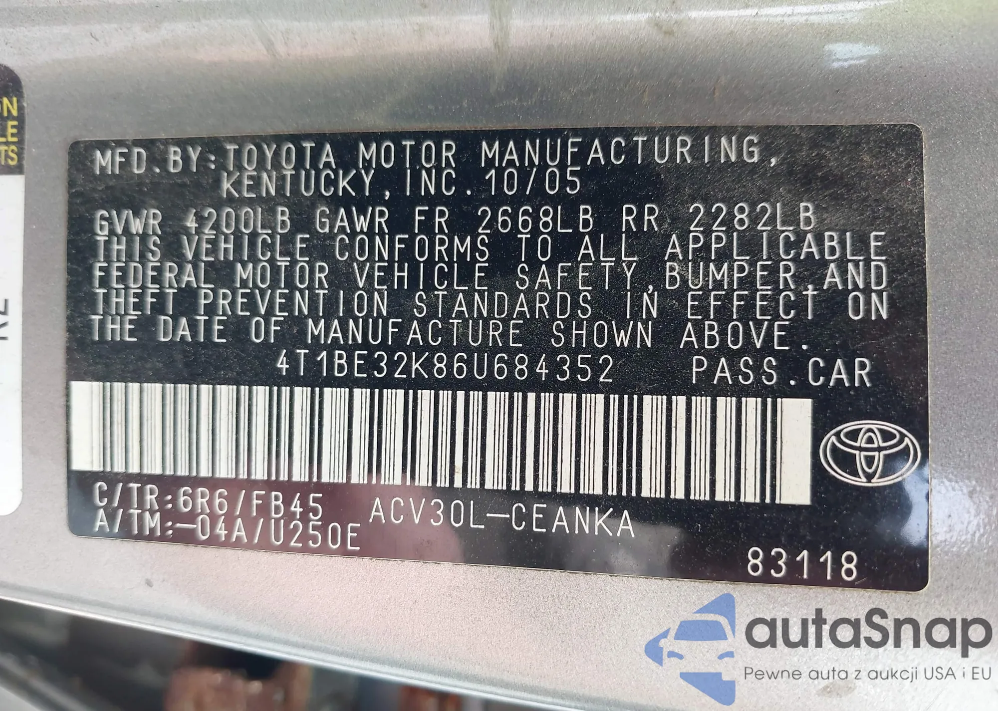 LOT: 42436114 VIN: 2T1KR30E47C648761
