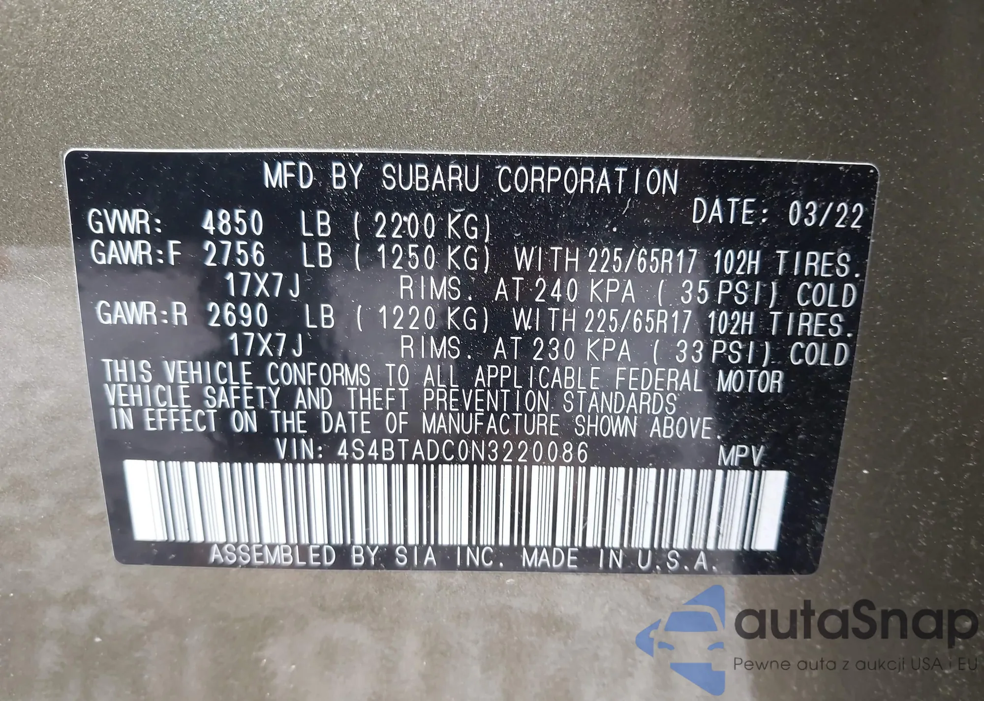 • VIN 4S4BTADC0N3220086