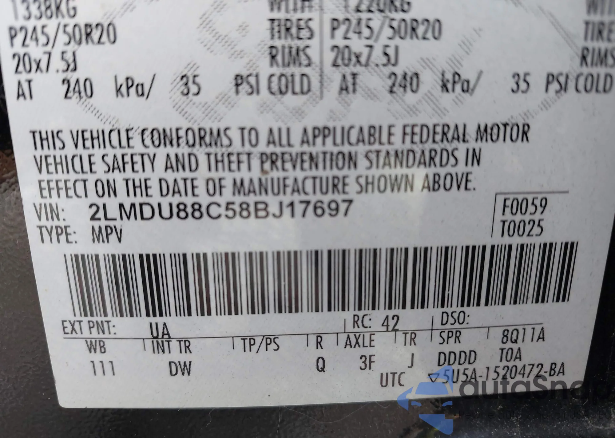 • VIN 2LMDU88C58BJ17697
