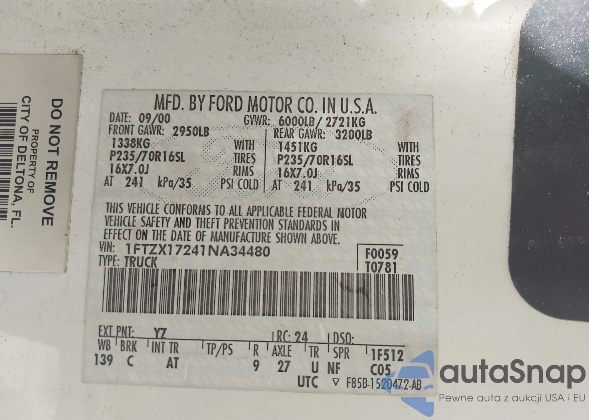 LOT: 42613506 VIN: 1FTZX17241NA34480
