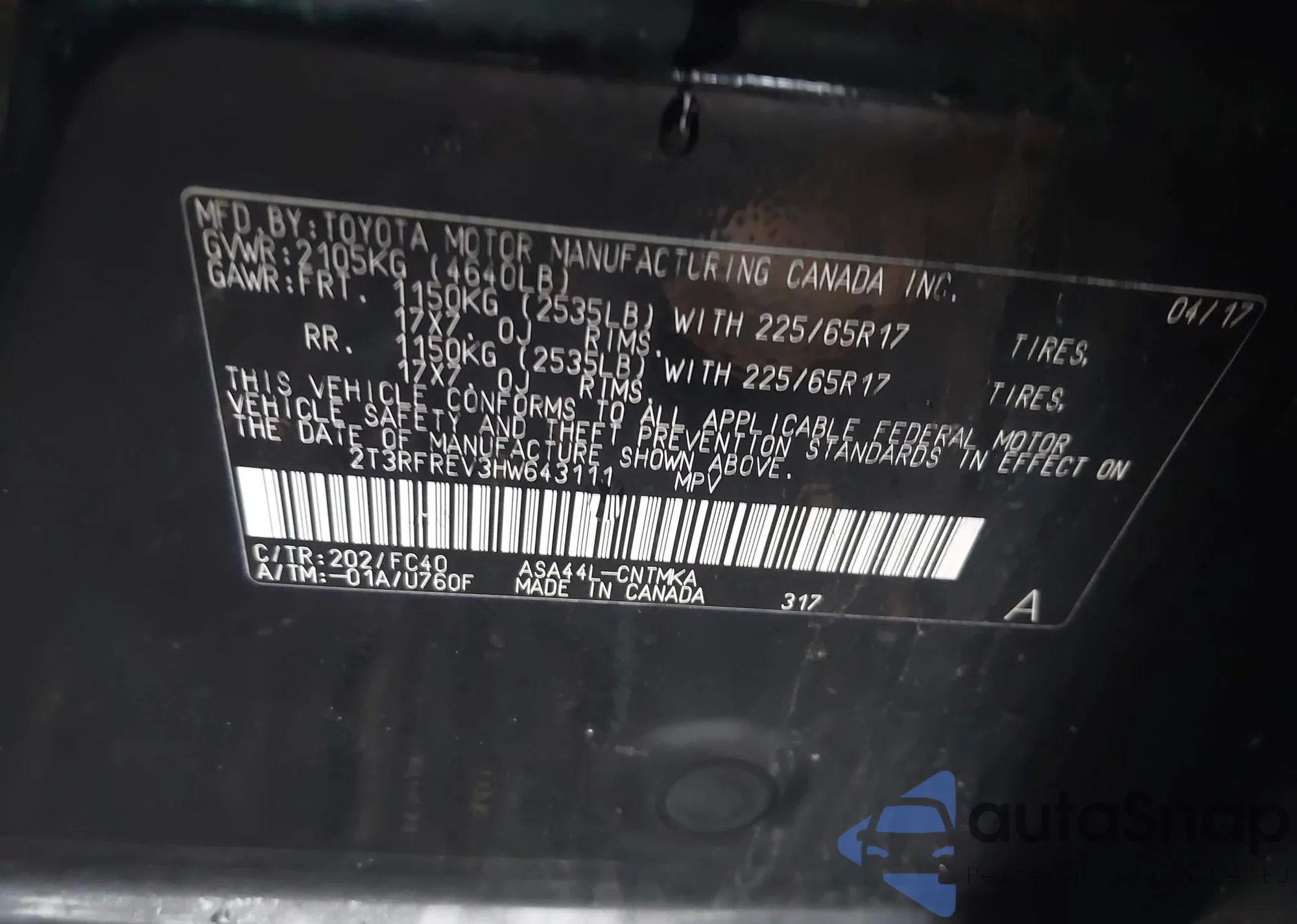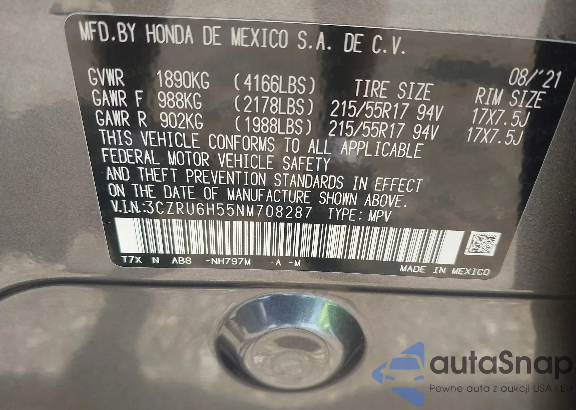 • VIN 3CZRU6H55NM708287