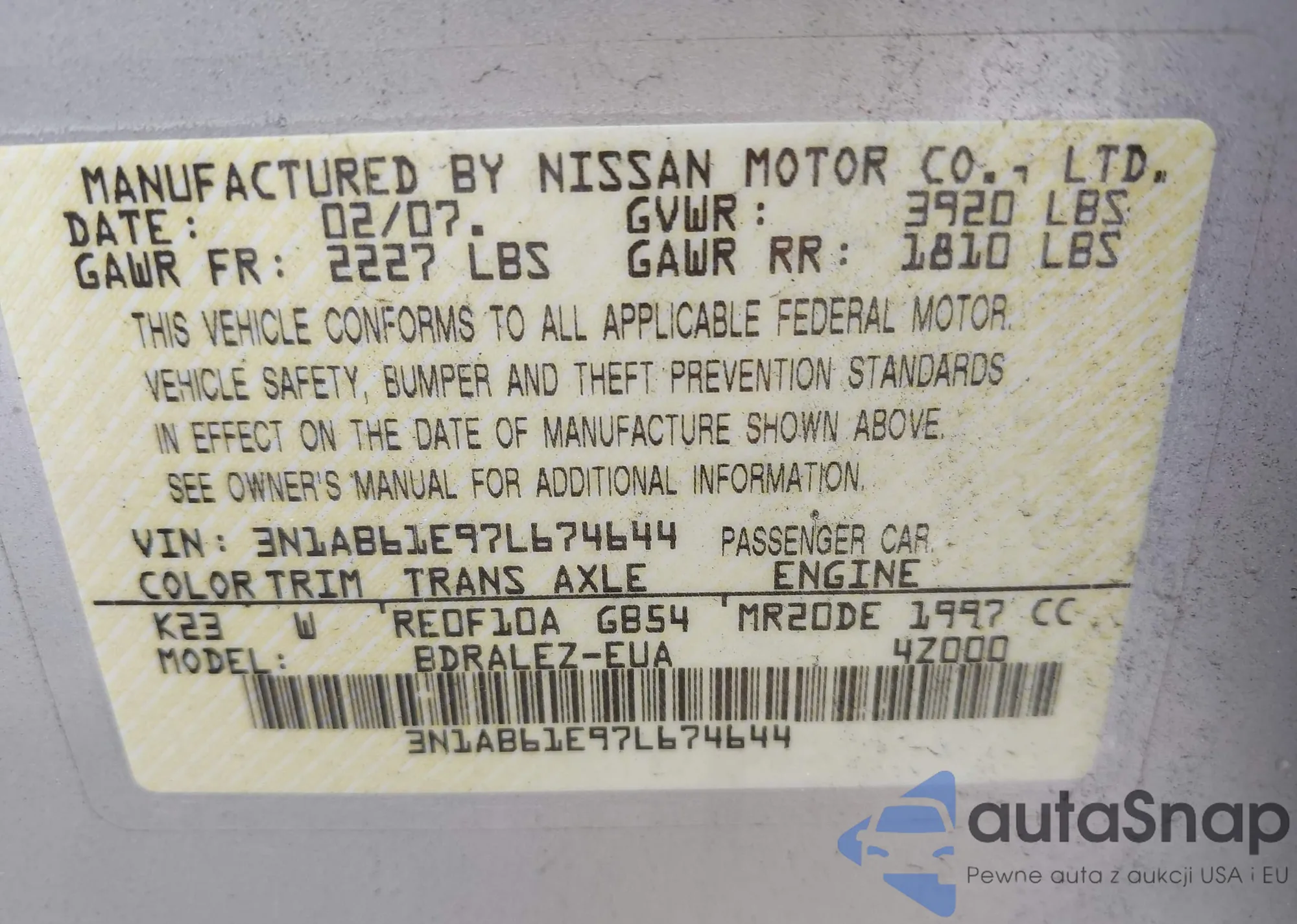 • VIN WVWPD63B9XE507947