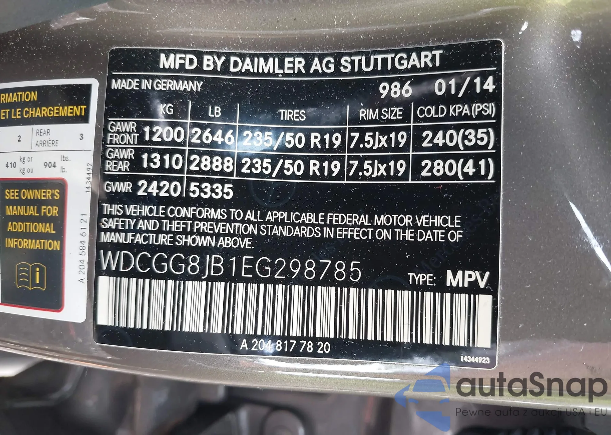 • VIN WDCGG8JB1EG298785