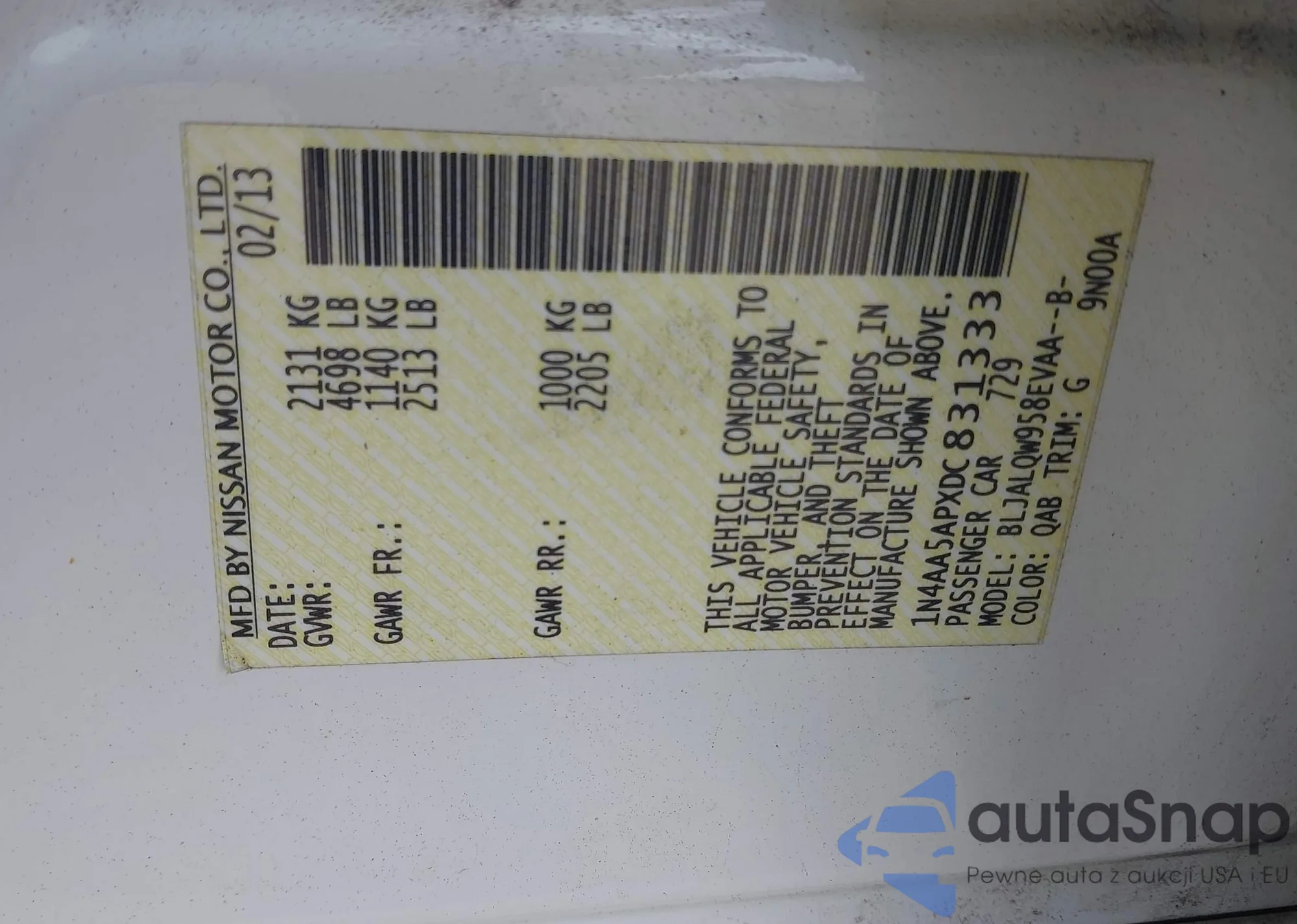 LOT: 42620456 VIN: WVWPD63B9XE507947