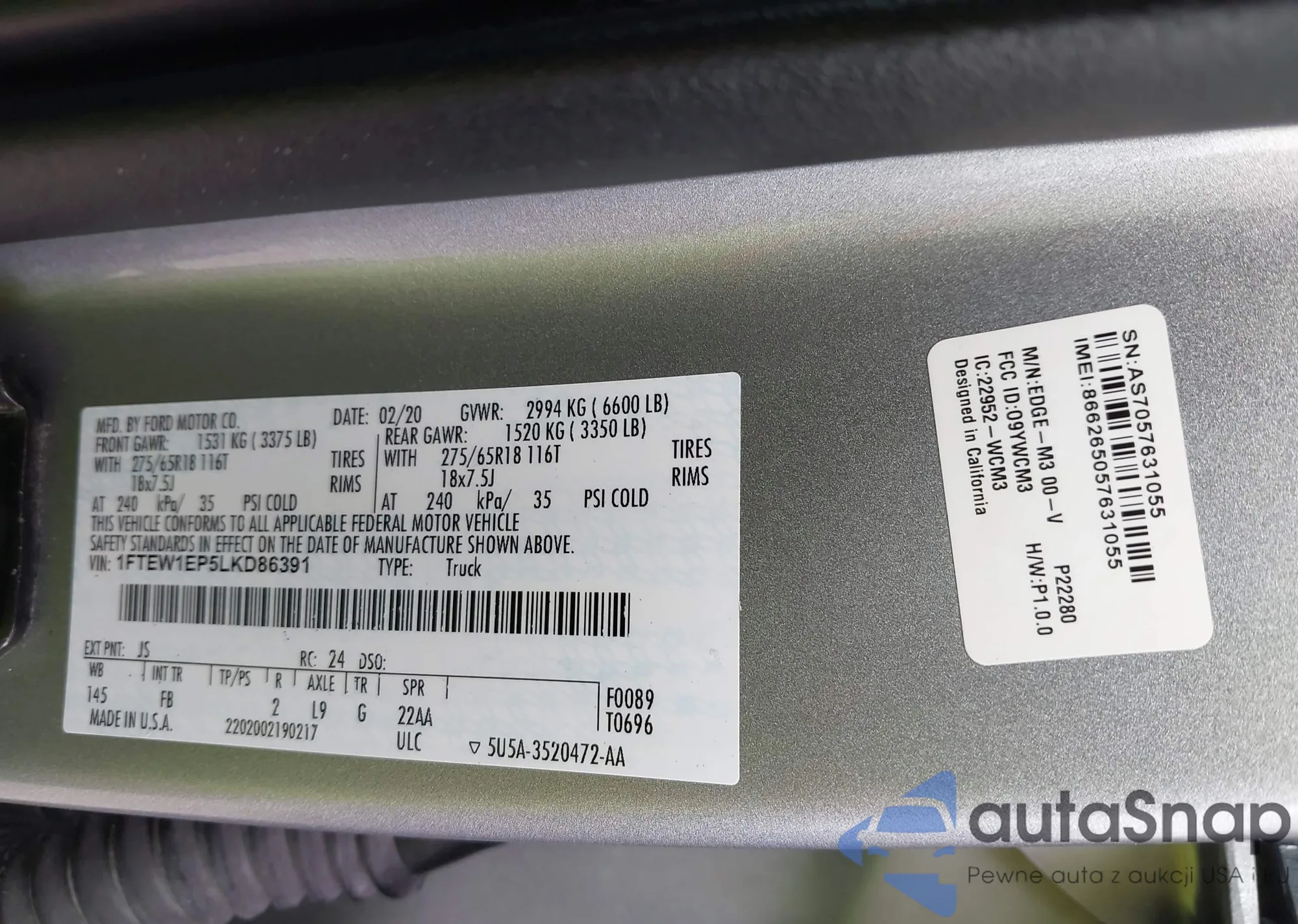 • VIN 4M2ZU86K95UJ03317