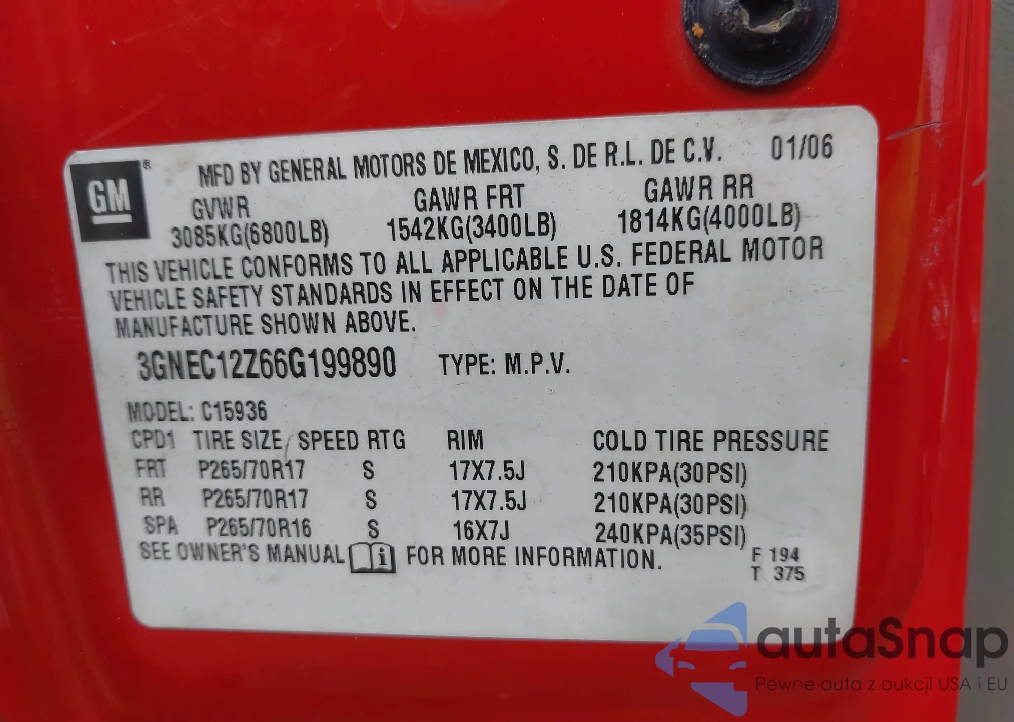 • VIN 5XYPG4A35GG115837