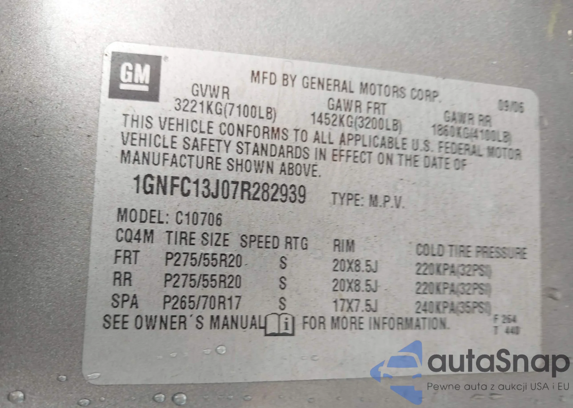 LOT: 42522161 VIN: 1GNFC13J07R282939