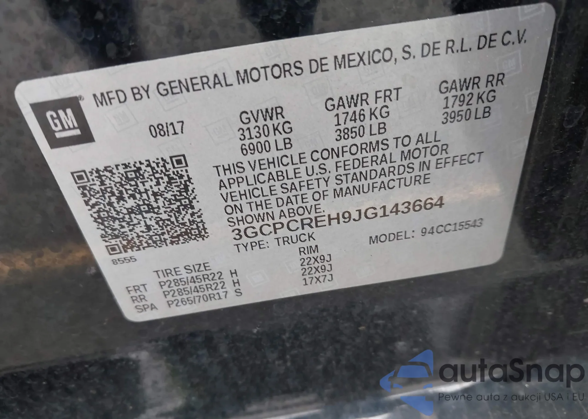 • VIN 3GCPCREH9JG143664