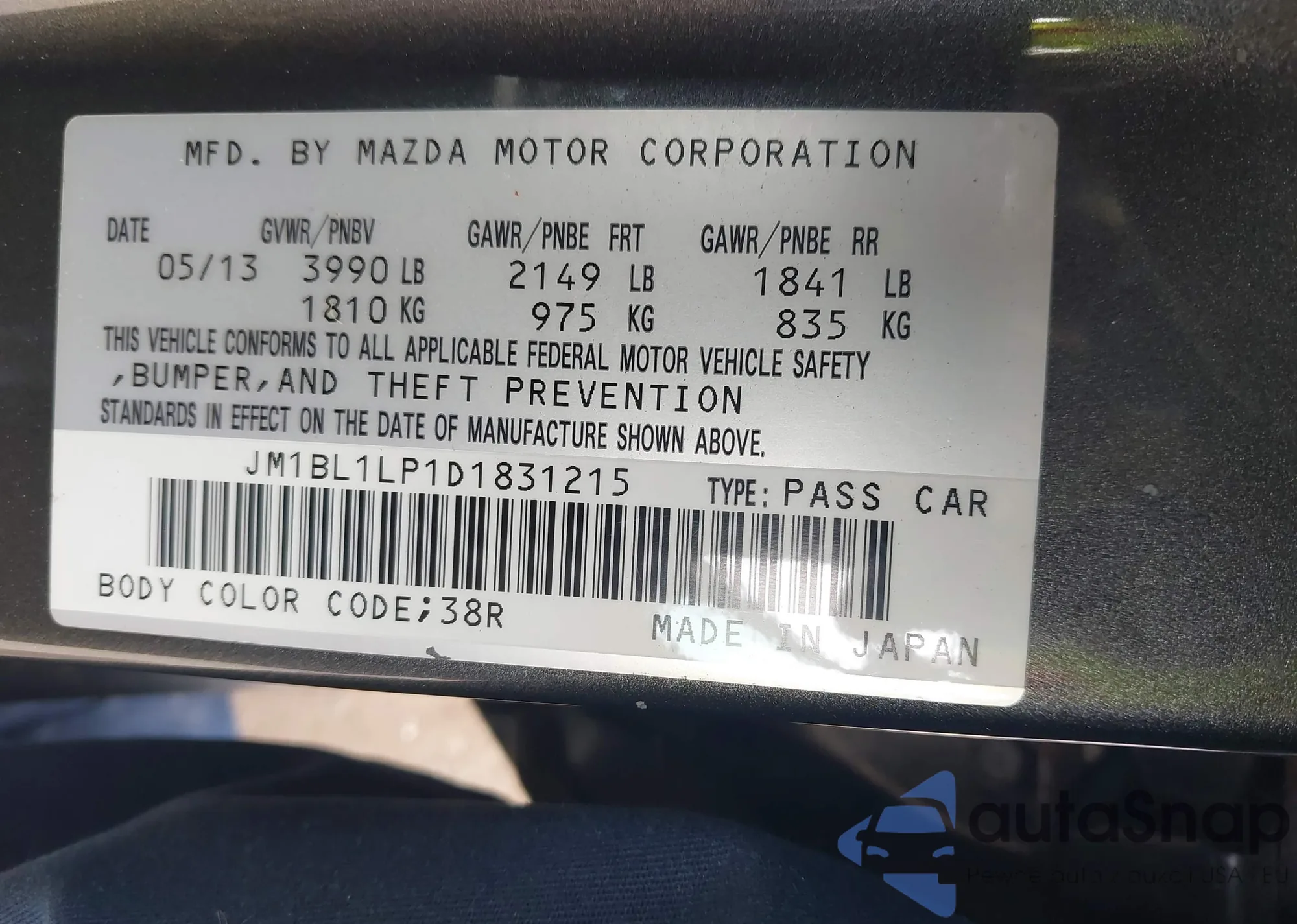 • VIN 2T1BU4EE5CC813840