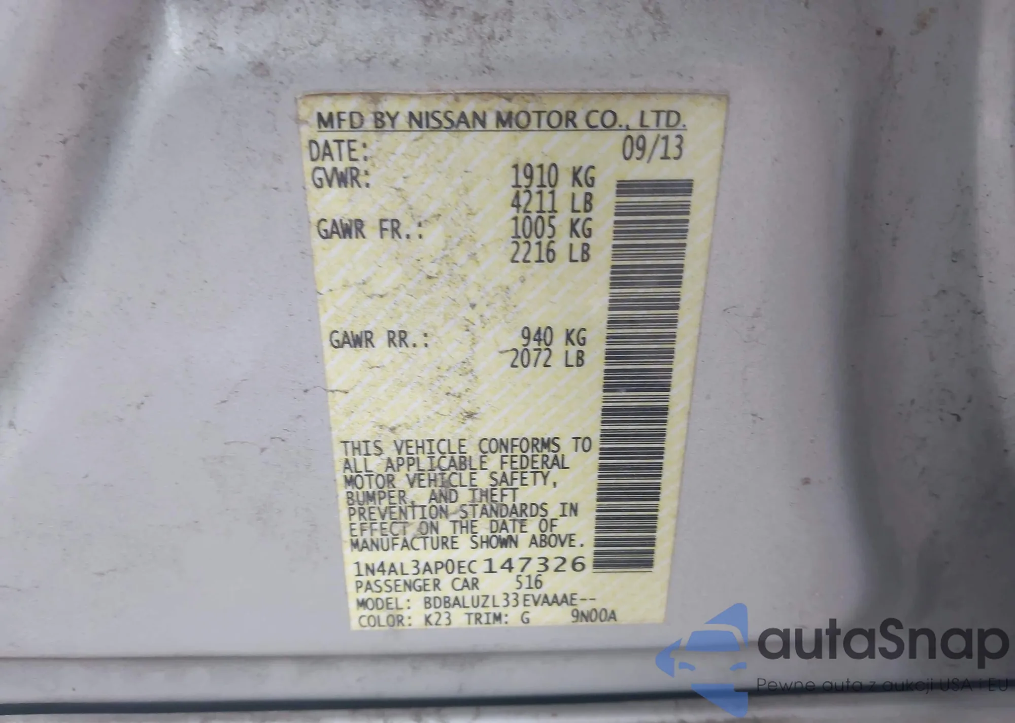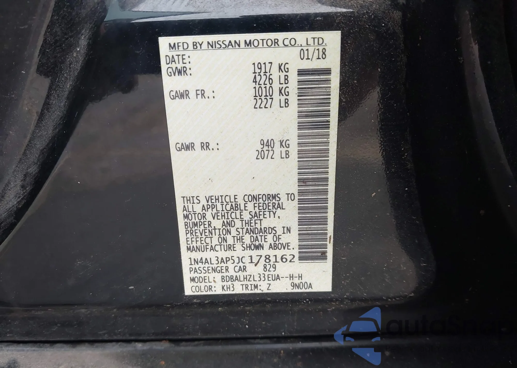 LOT: 42371337 VIN: 1N4AL3AP5JC178162
