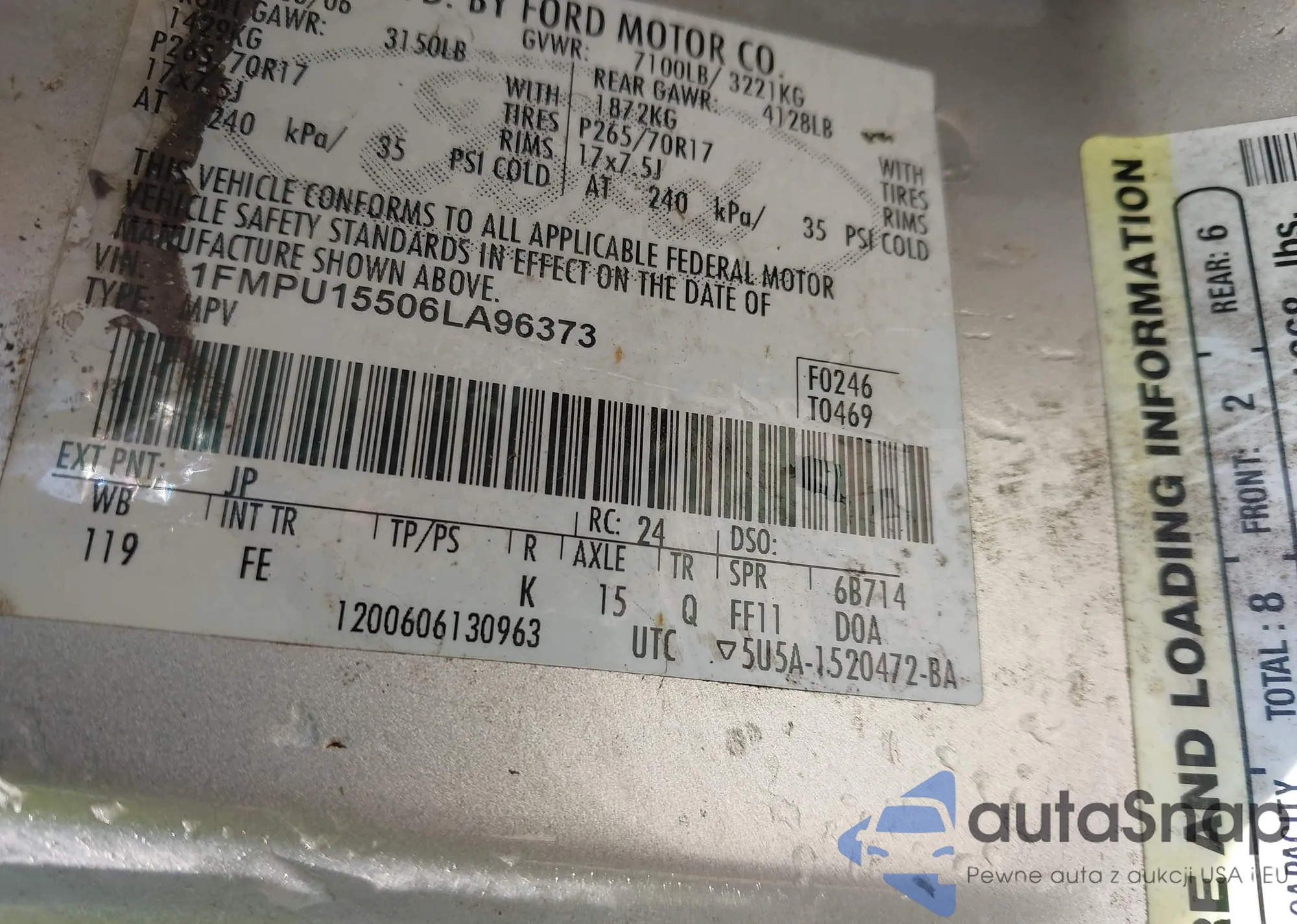 LOT: 42593049 VIN: 1FMPU15506LA96373