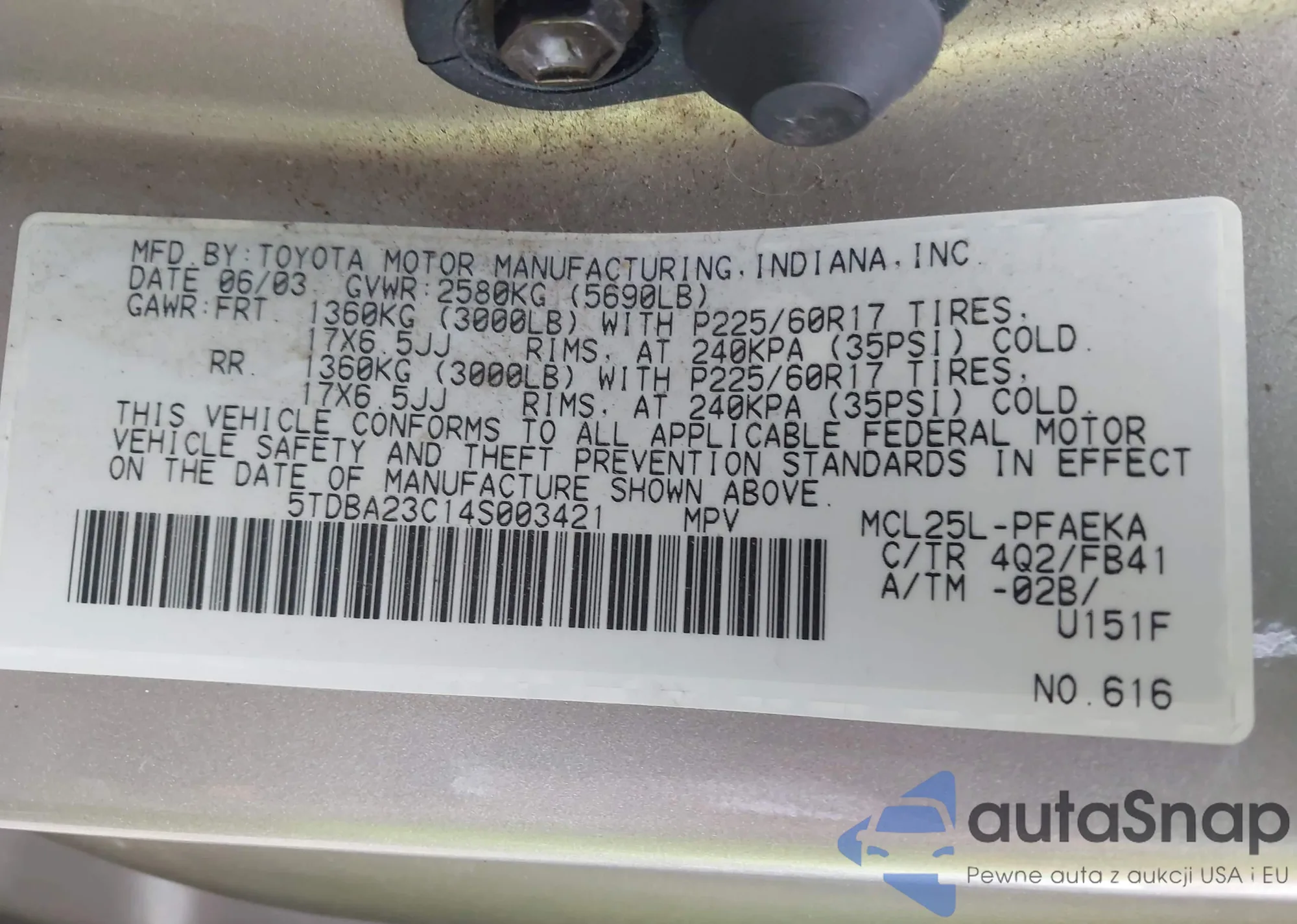 LOT: 42346664 VIN: 4T1BK36B37U196947