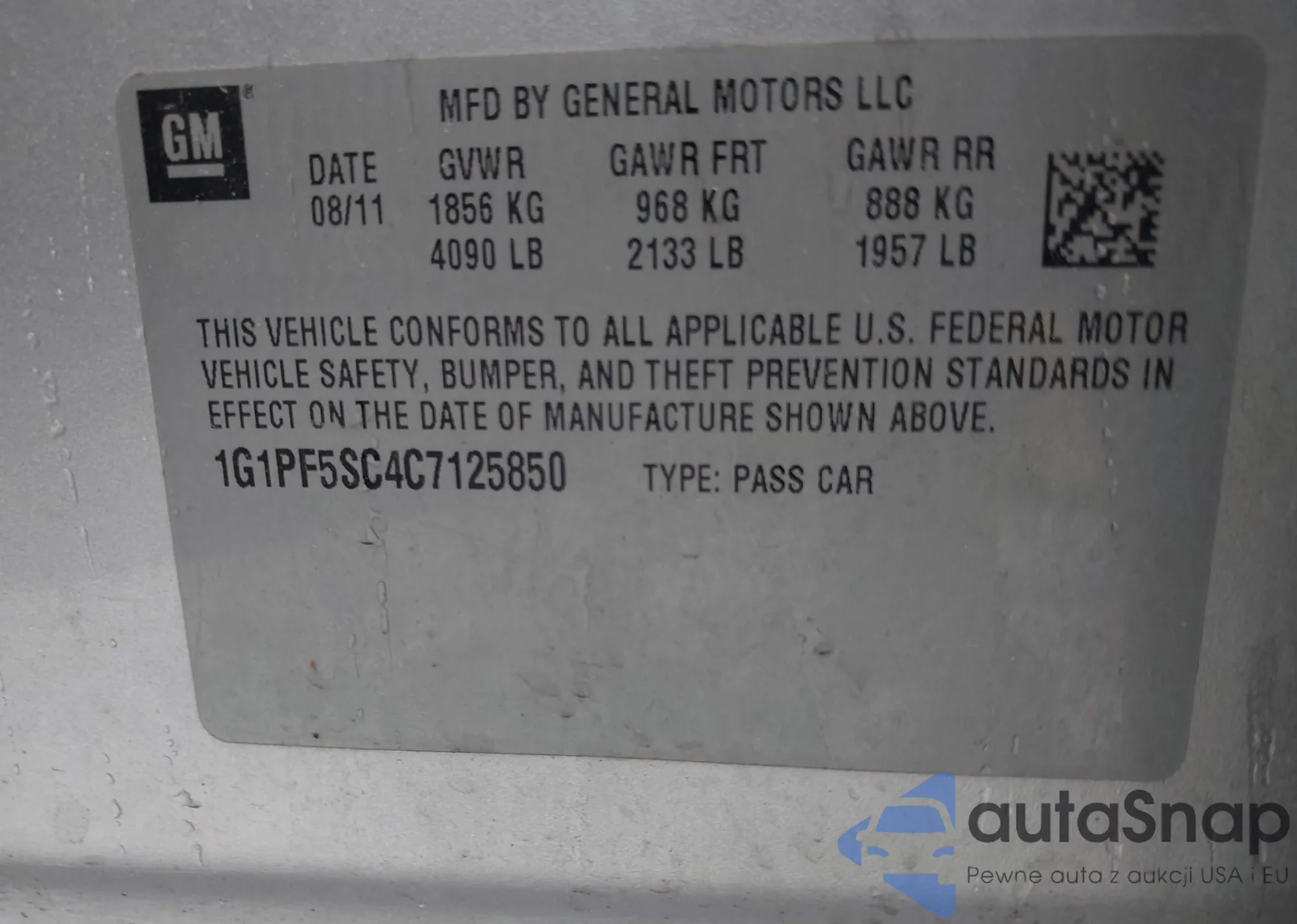 • VIN 1G1PF5SC4C7125850