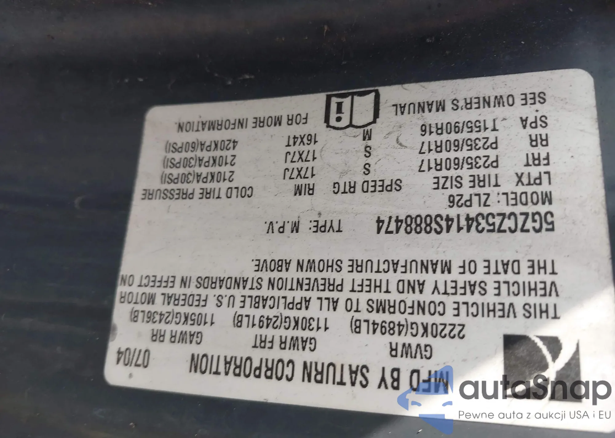 • VIN 3GNEK12T74G166814